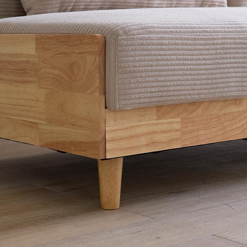 フレームにはラバーウッド材を取り入れ、木のぬくもりと洗練された雰囲気をプラス。ナチュラルな色合いがインテリアにやわらかな印象を与えます。エッジを丸く仕上げた優しい印象で、どんなインテリアにも素敵にマッチします。