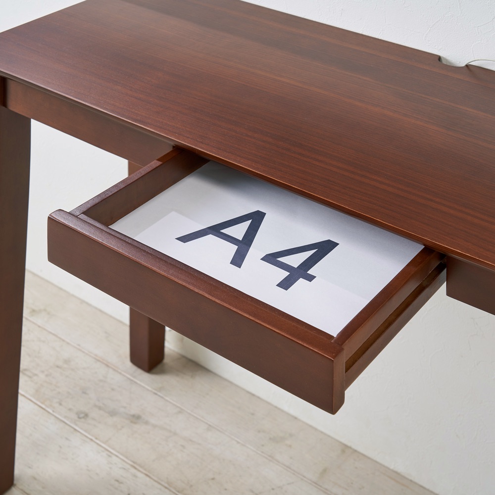 ●A4書類が入る引出しが1杯つき。●配線逃し付きでデスクの上もすっきり。