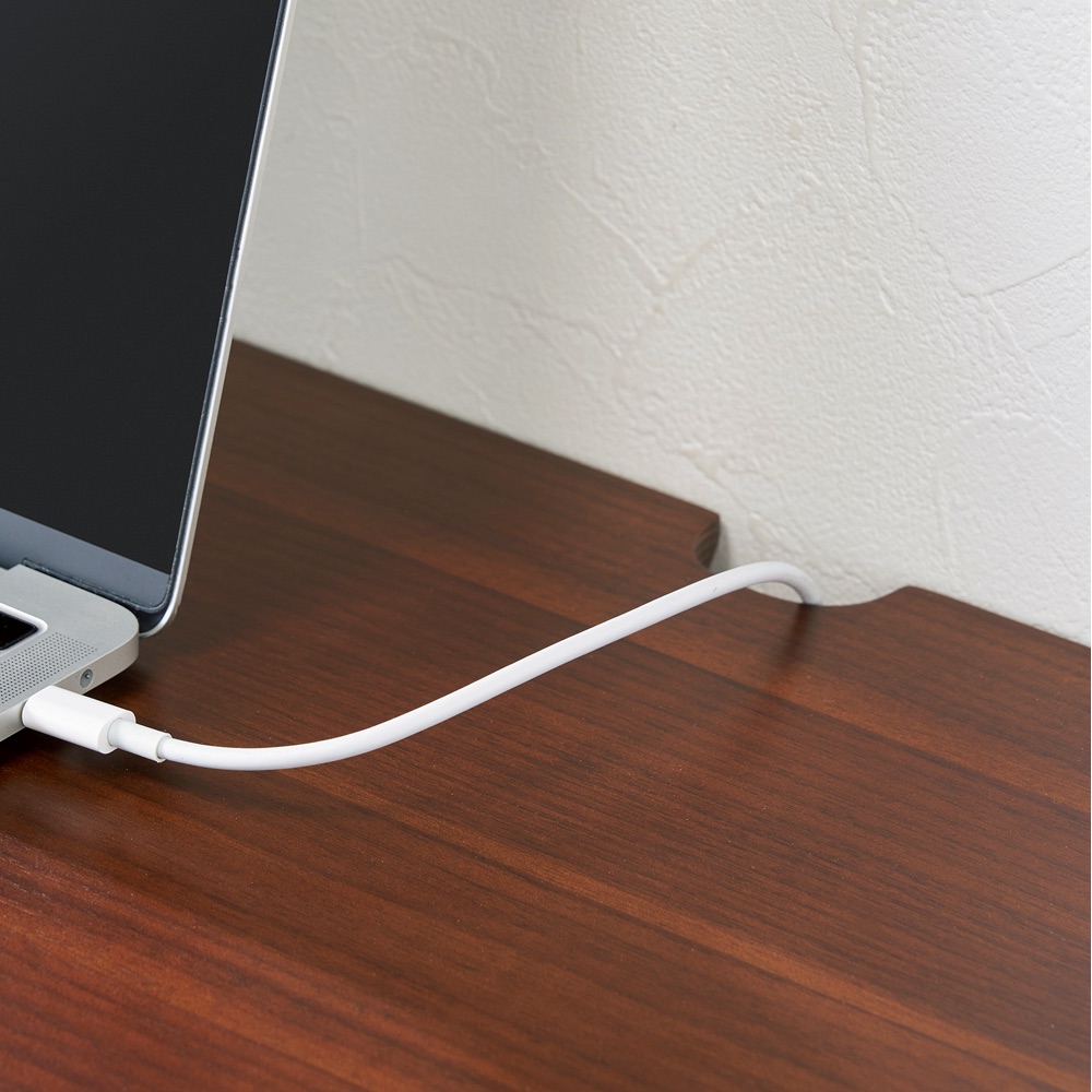 配線逃がしの切り欠きをデスク天板奥に配置。