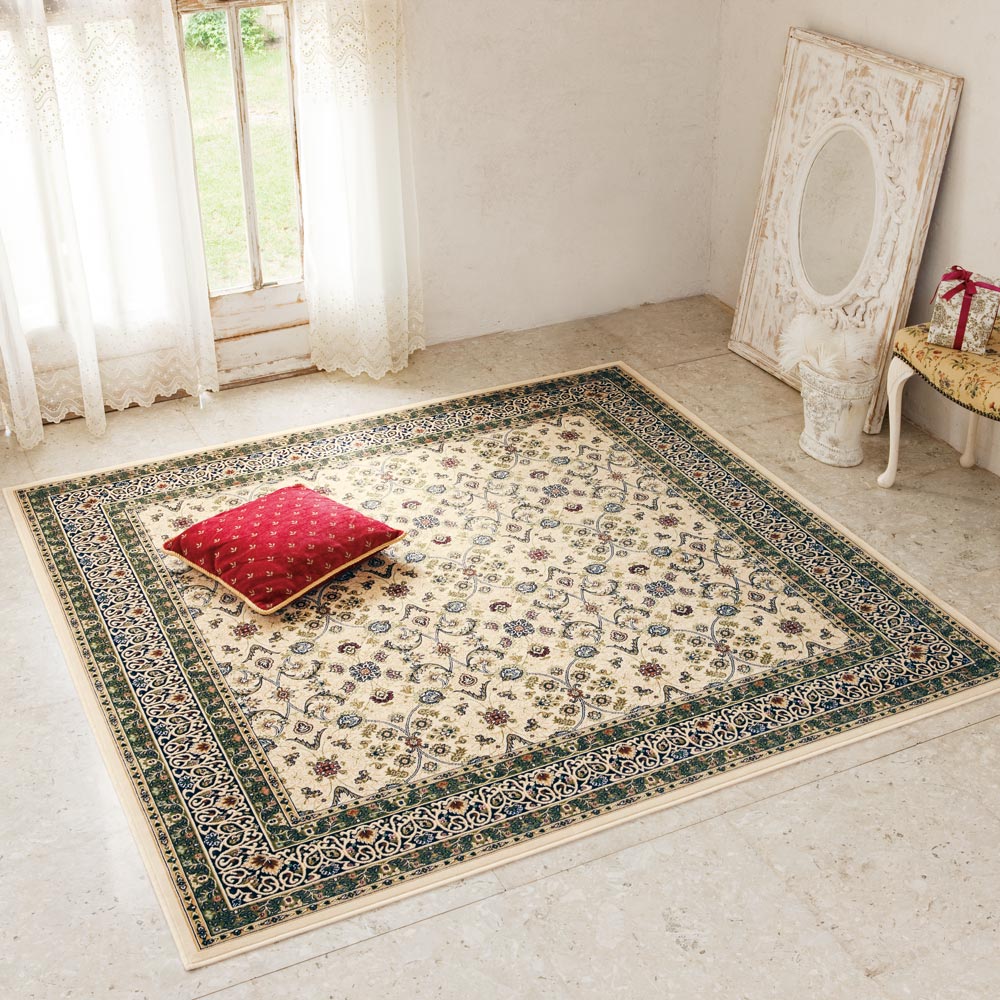 ◆繊細なクラシカル柄となめらかな肌触りで大人気の国産モケット織ラグ「ポーロ」◆