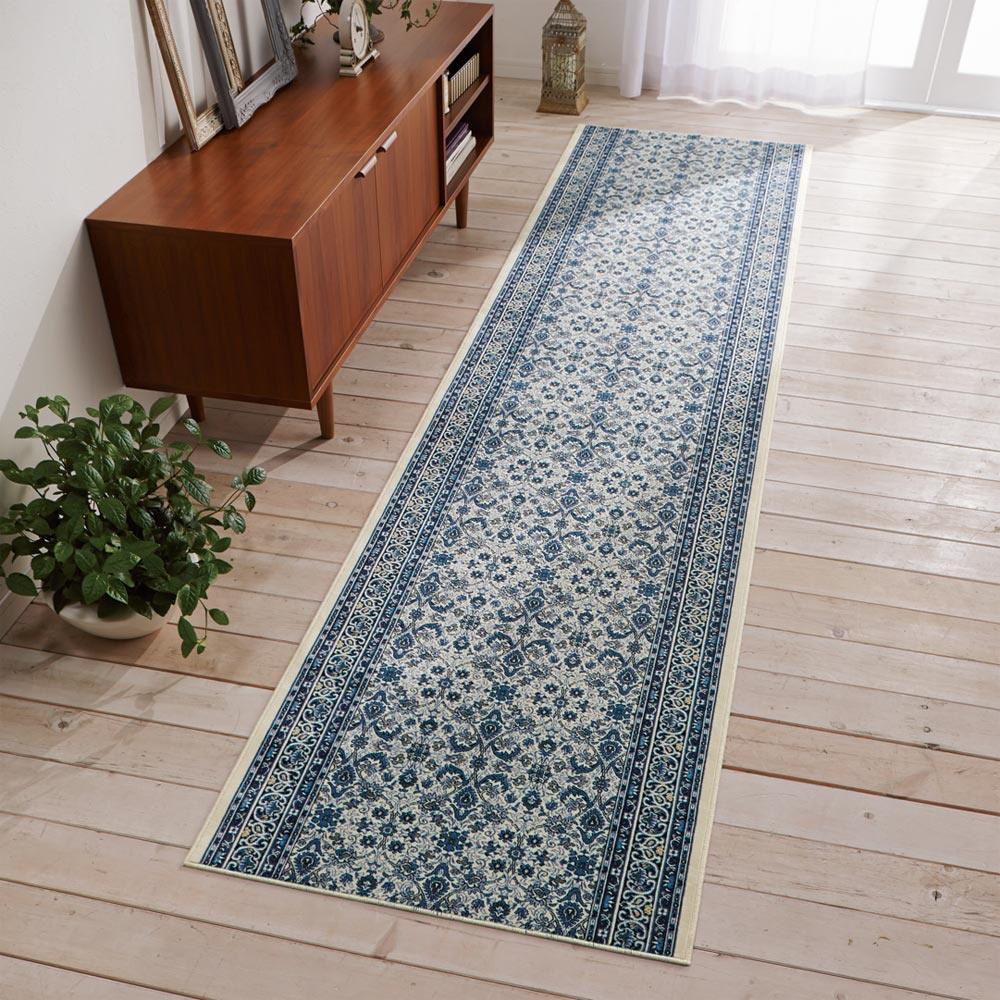 なめらかなモケット織で表現された繊細でクラシカルな柄がリッチな雰囲気。敷くだけで、廊下を華やかな空間にドレスアップしてくれます。もちろん、ウォッシャブル仕様や抗菌・防臭と機能も充実。