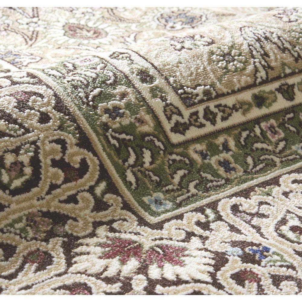 国産カーペットによくあるタフト織りに比べて密度が高いため、毛羽が出にくく丈夫です。また繊維が細いので緻密で美しい柄が表現できます。