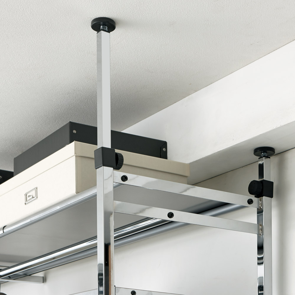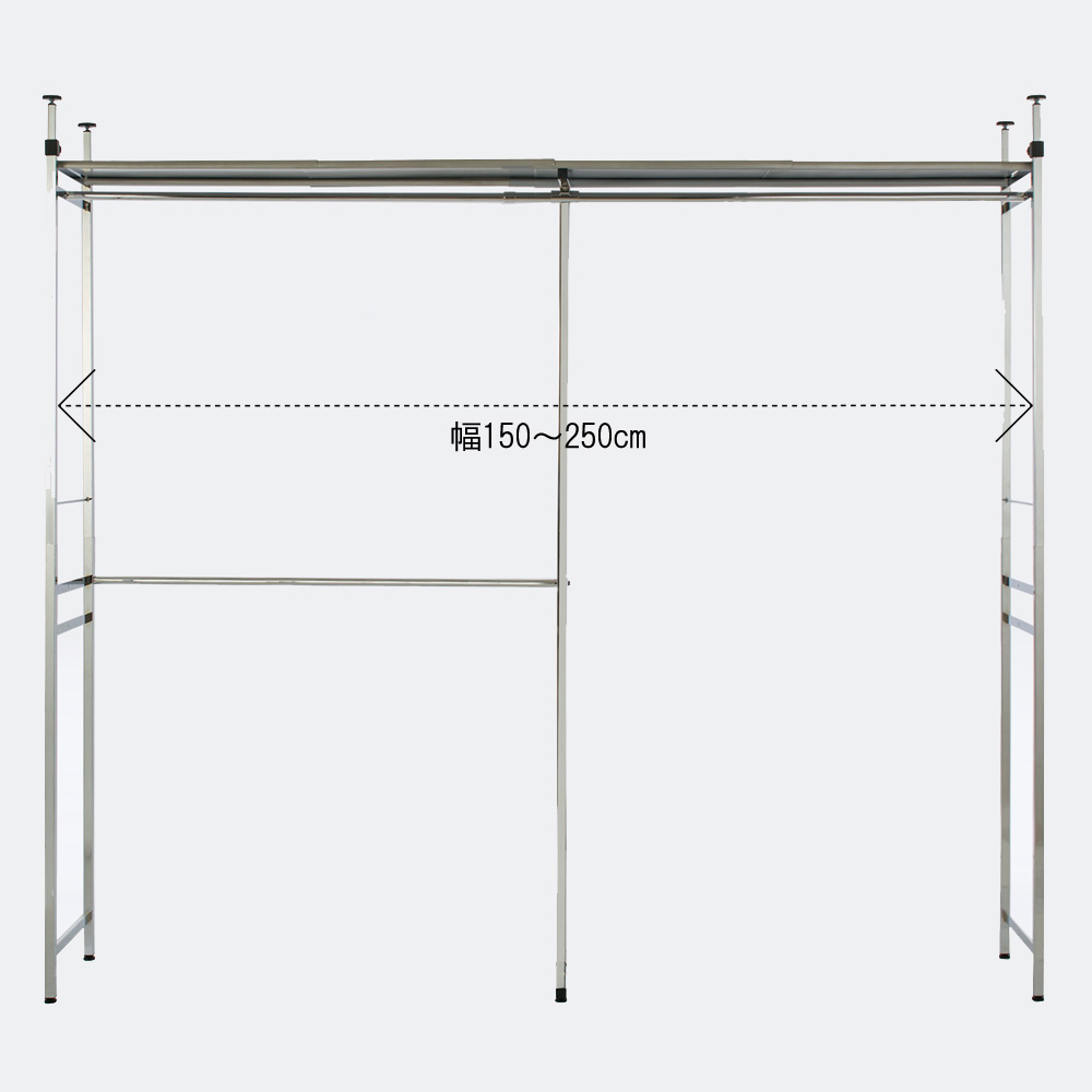 ●150cm~250cmの間で幅が伸縮するので、置きたい場所にぴったり設置できます。●ウォークインクローゼットなどの限られた空間も効率的な収納スペースになります。