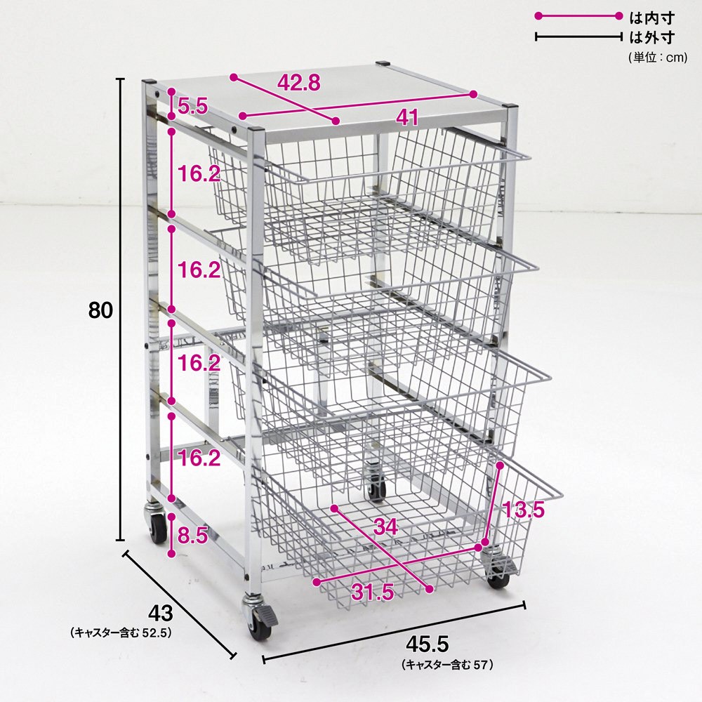 ■サイズ:(キャスター含む)幅57cm、奥行52.5cm、(本体)幅45.5cm、奥行43cm、高さ80cm、重量10kg