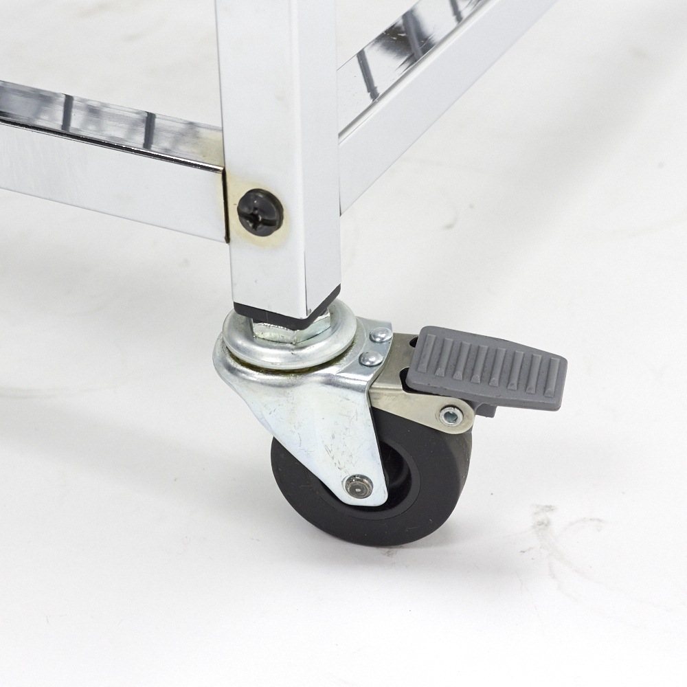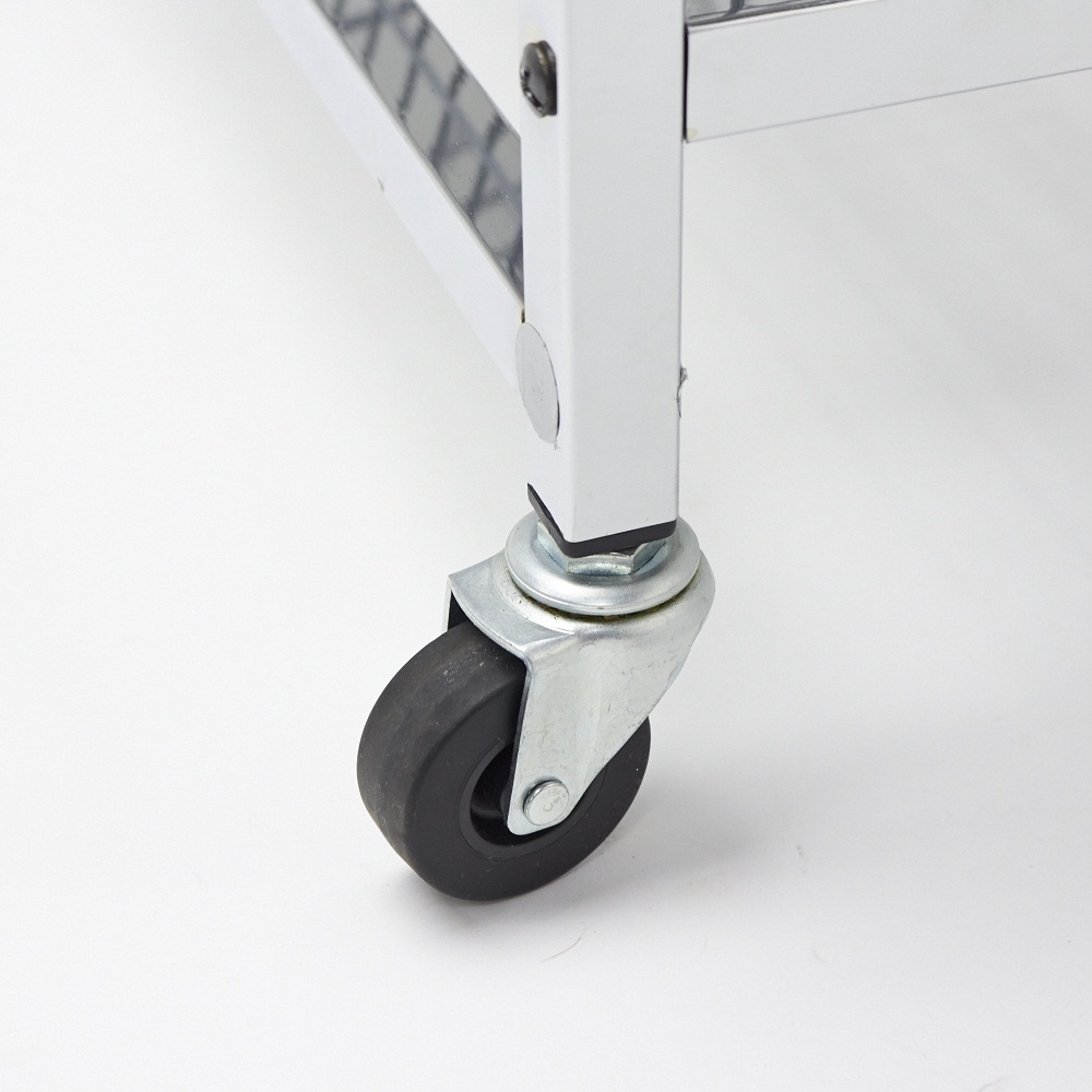 キャスターはしっかり支える頑丈仕様です。前輪2つはストッパー付きでしっかり固定できます。(※サンプルのため、商品が汚れており申し訳ございません)