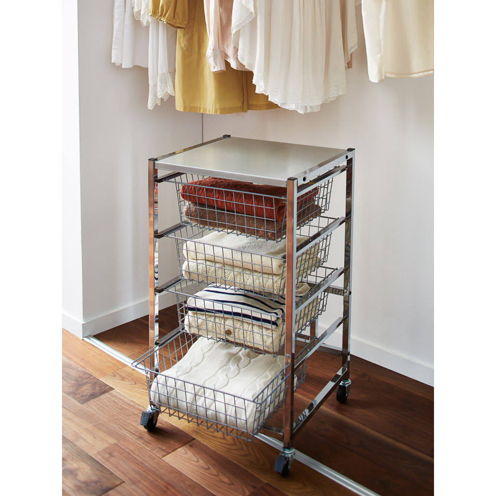 クロムメッキのフレームが高級感を醸し出す衣類チェスト。通気性が良いので多用途にお使いいただけます。