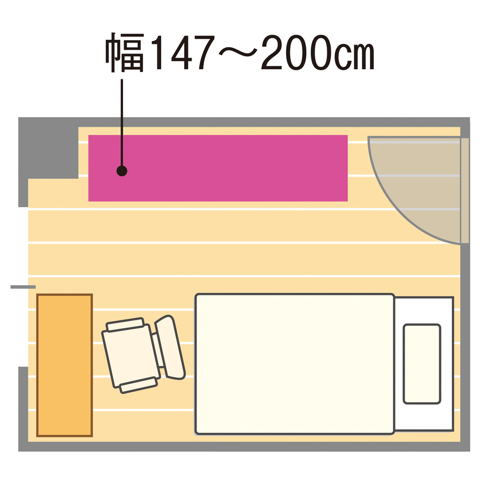 ●4~6畳のワンルームや寝室におすすめの「標準幅(147~200cm)」。●8~10畳の寝室やウォークインクローゼットにおすすめの「ワイド幅(195~273.5cm)」。