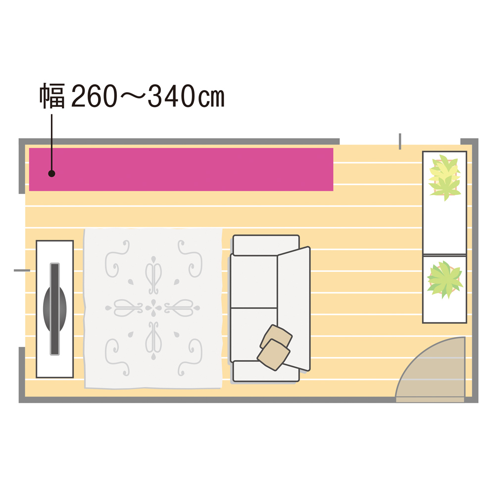 幅が伸縮するので空間の使い方も自在に変えられます。(写真は最小幅260cmで撮影しています。別売りのサイドカーテンを使用しています。)