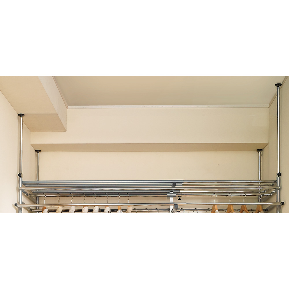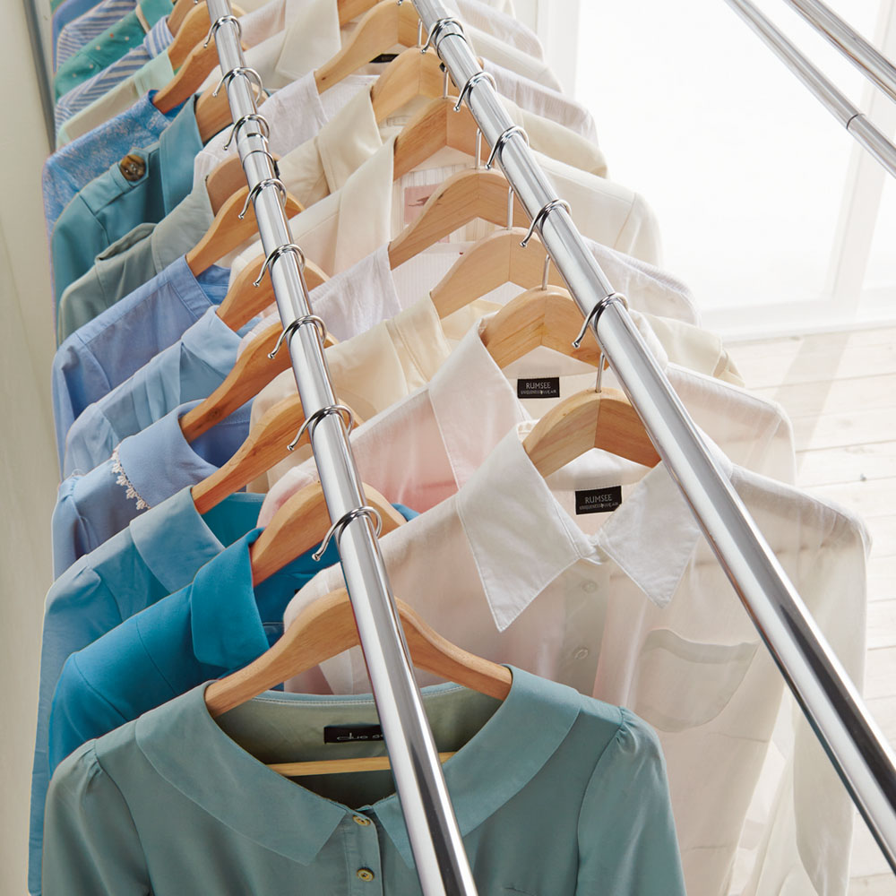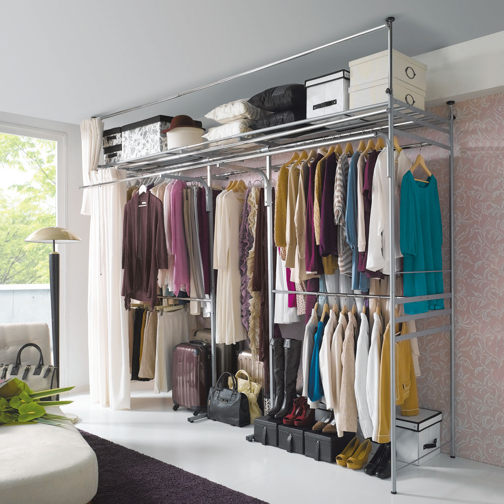 ●突っ張り式だから洋服をたくさん掛けてもしっかり支えます。●中央のパイプには強度に優れたパイプを使用しています。