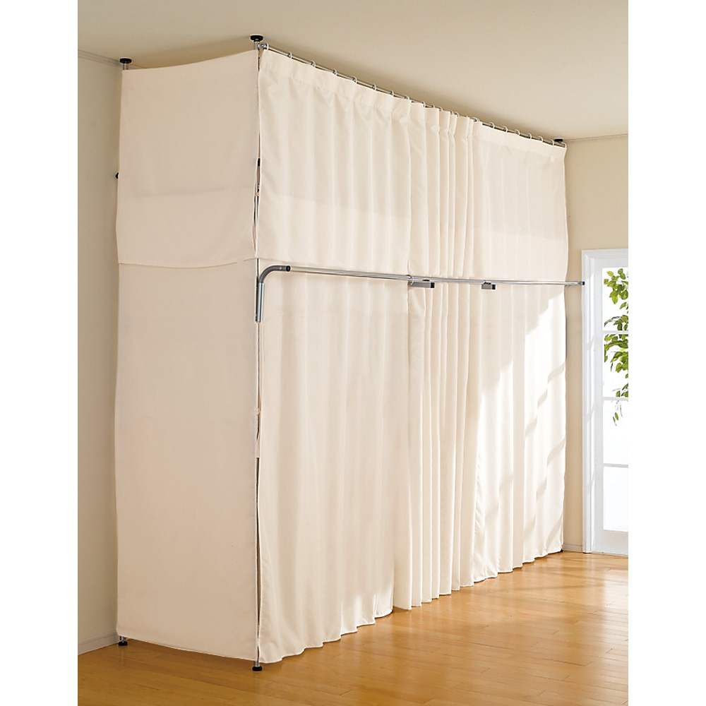 奥行79cm 上下カーテン付き突っ張り頑丈ハンガーラック ロータイプ・【ワイド】幅260-340cm対応 クローゼットハンガー カバー 衣類収納 632102