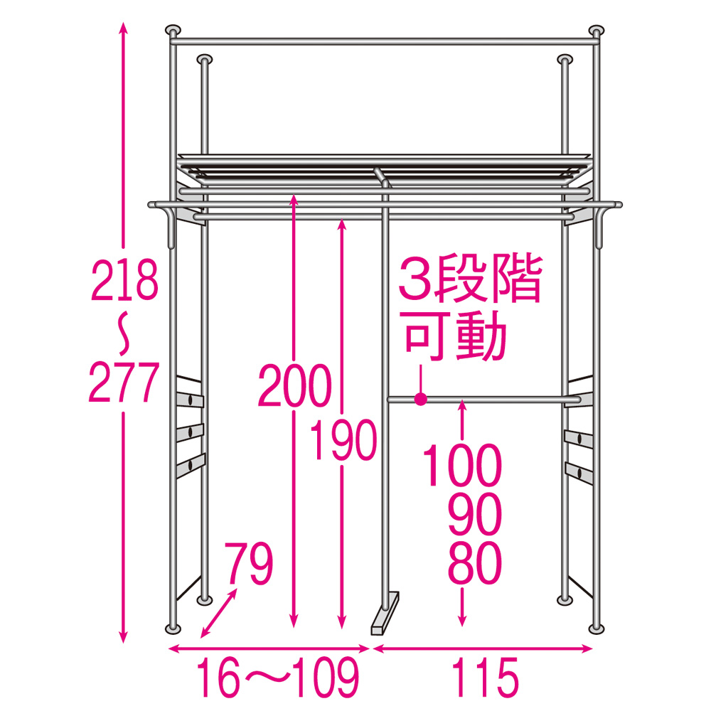 ■サイズ:幅137~230奥行91(サブハンガー取り外し時奥行79)高さ218~277cm・重さ約31kg