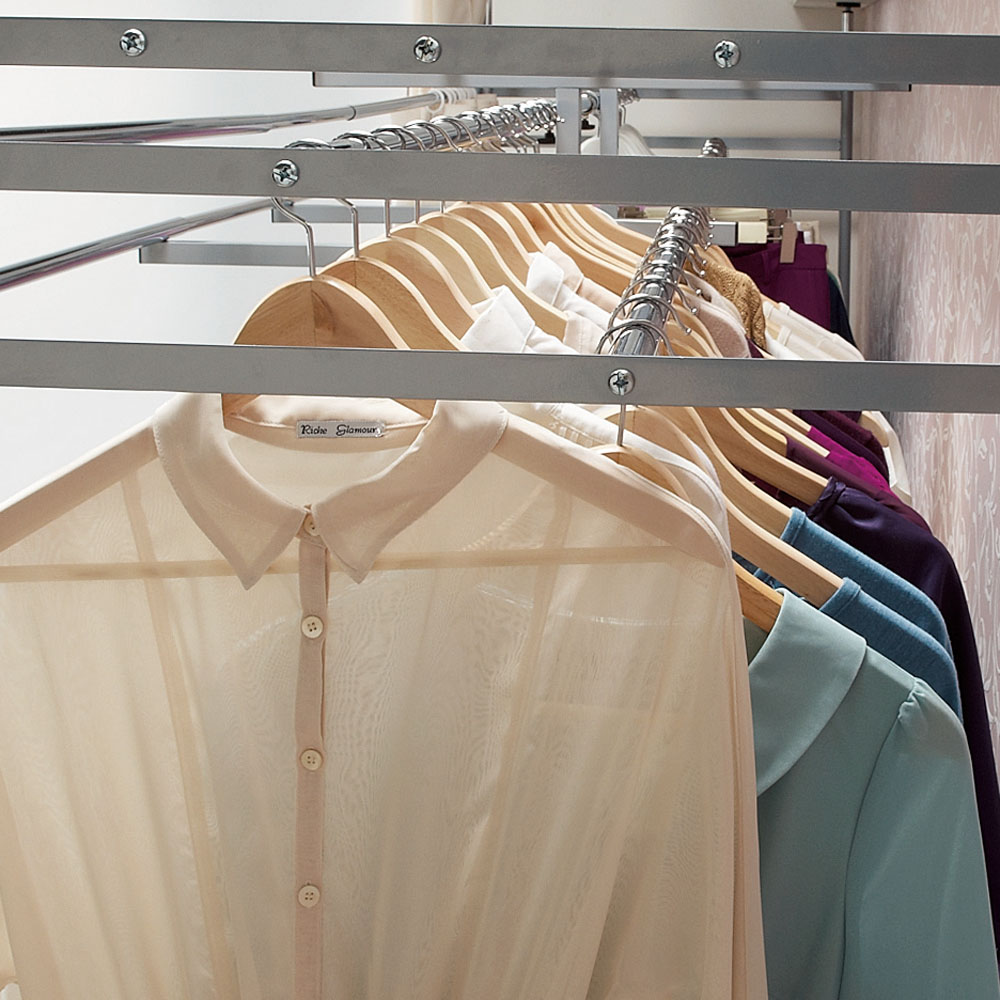 下段ハンガーバーは3段階に高さ調節ができます。お持ちの洋服の丈に合わせてご使用ください。