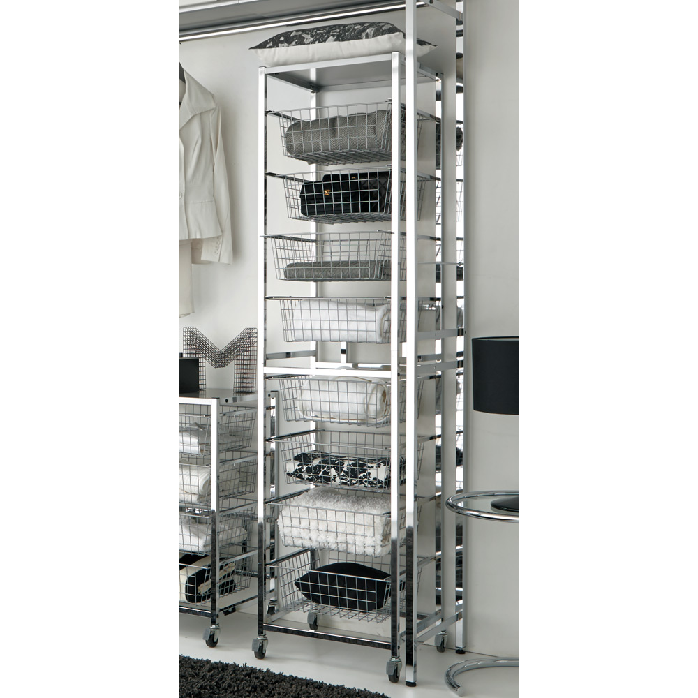 省スペースでも8段の引き出しで衣類収納にぴったり。ワイヤーバスケットは中身が見えるので、出し入れが簡単にできます。