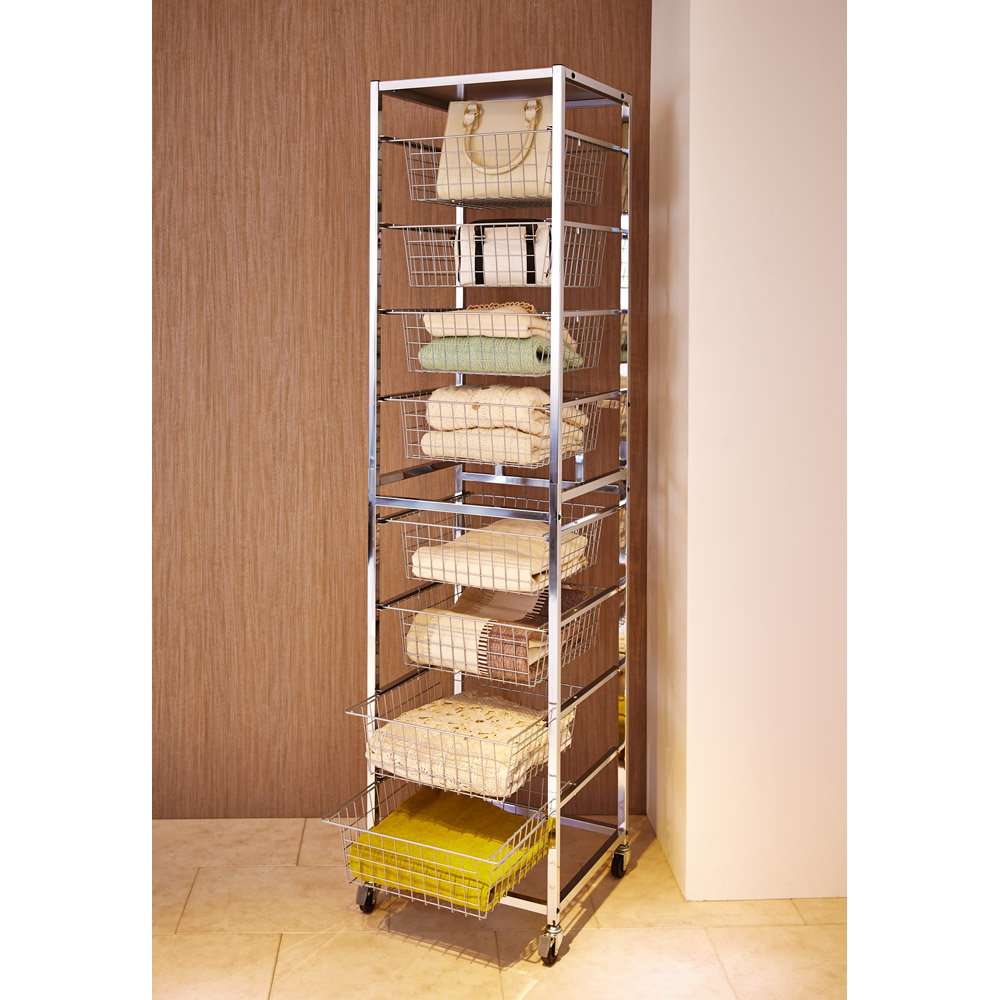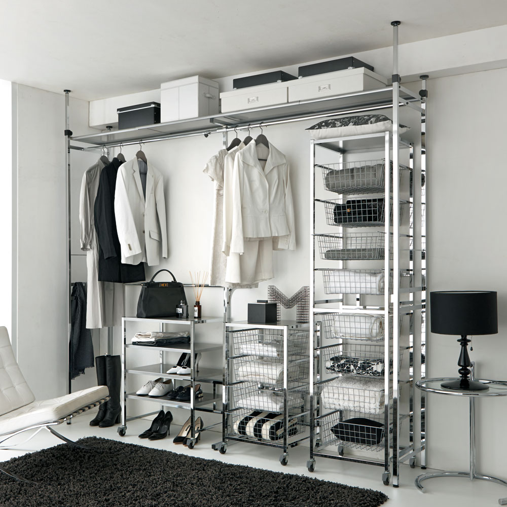 クローゼット空間のデッドスペースを活用できるタワー型のバスケットラックです。