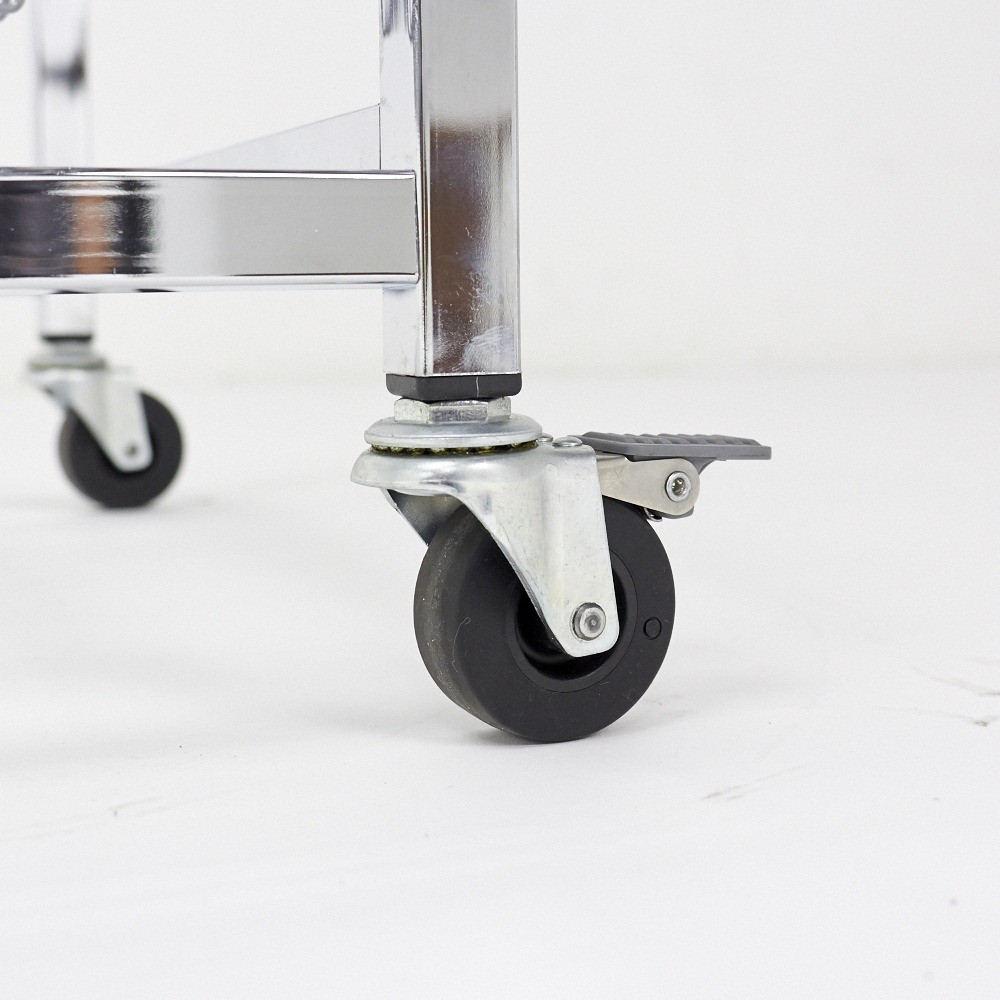 キャスターも重さを支える頑丈仕様です。前輪2つはストッパー付きでしっかり固定できます。