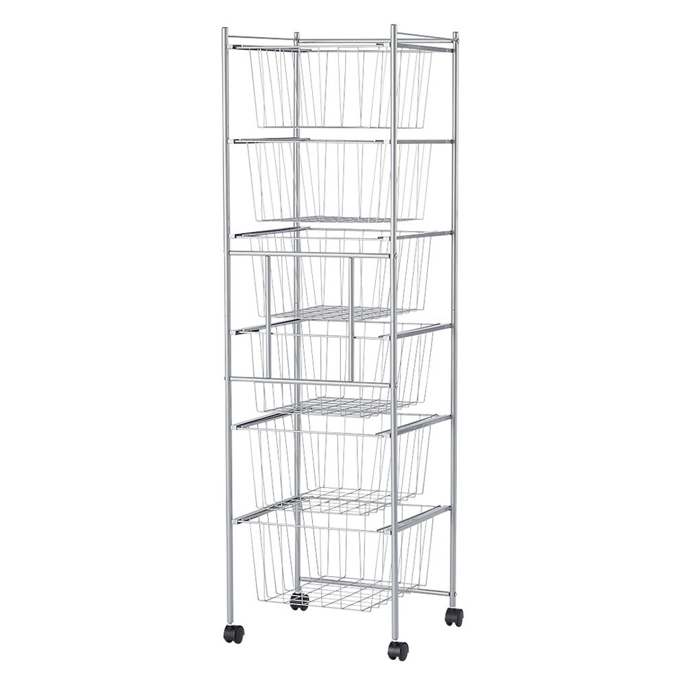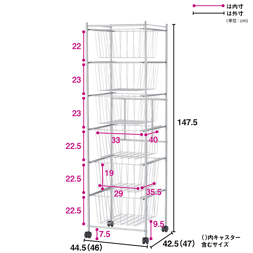 奥行53cm 上下カーテン付き突っ張り頑丈シリーズ スライドバスケット6段 押入れ クローゼット収納 衣類収納 632017