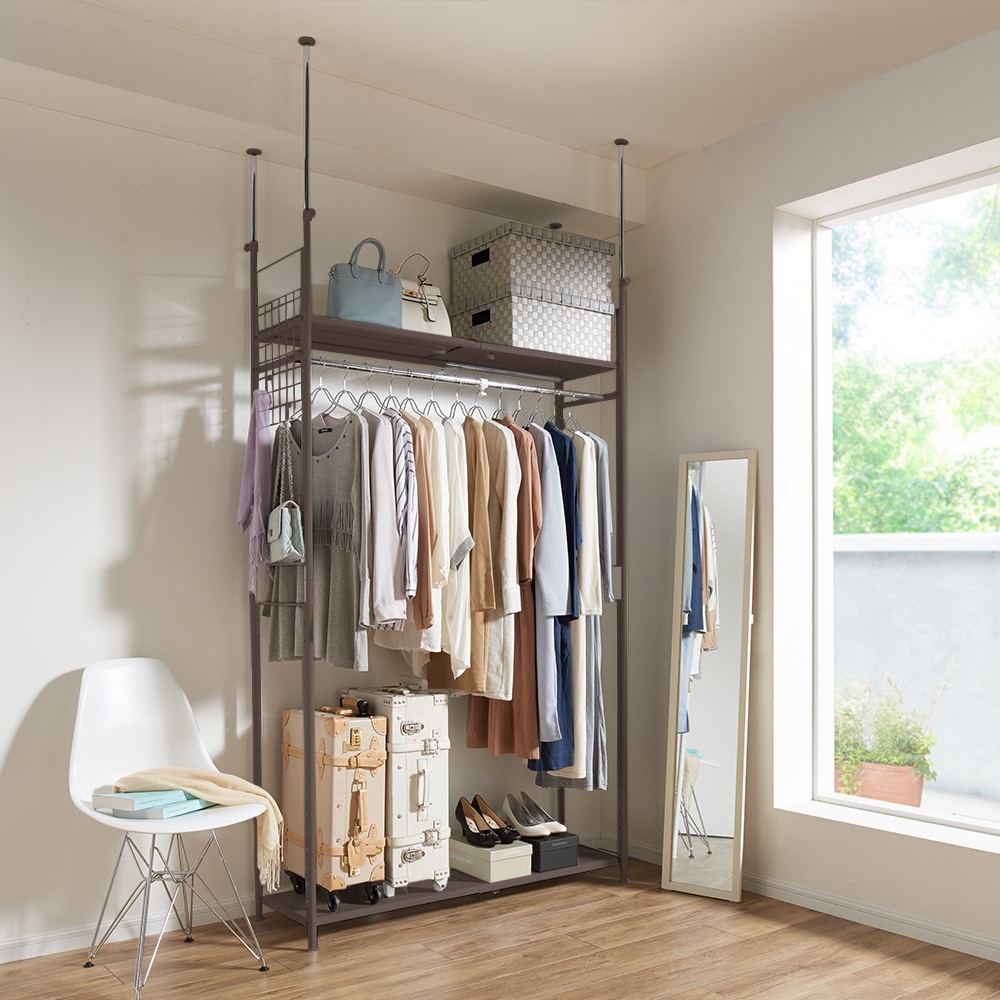 頑丈フレキシブル伸縮ラック 突っ張り式ハイ幅103-160cm ハンガーラック パイプハンガー 衣類収納 632006