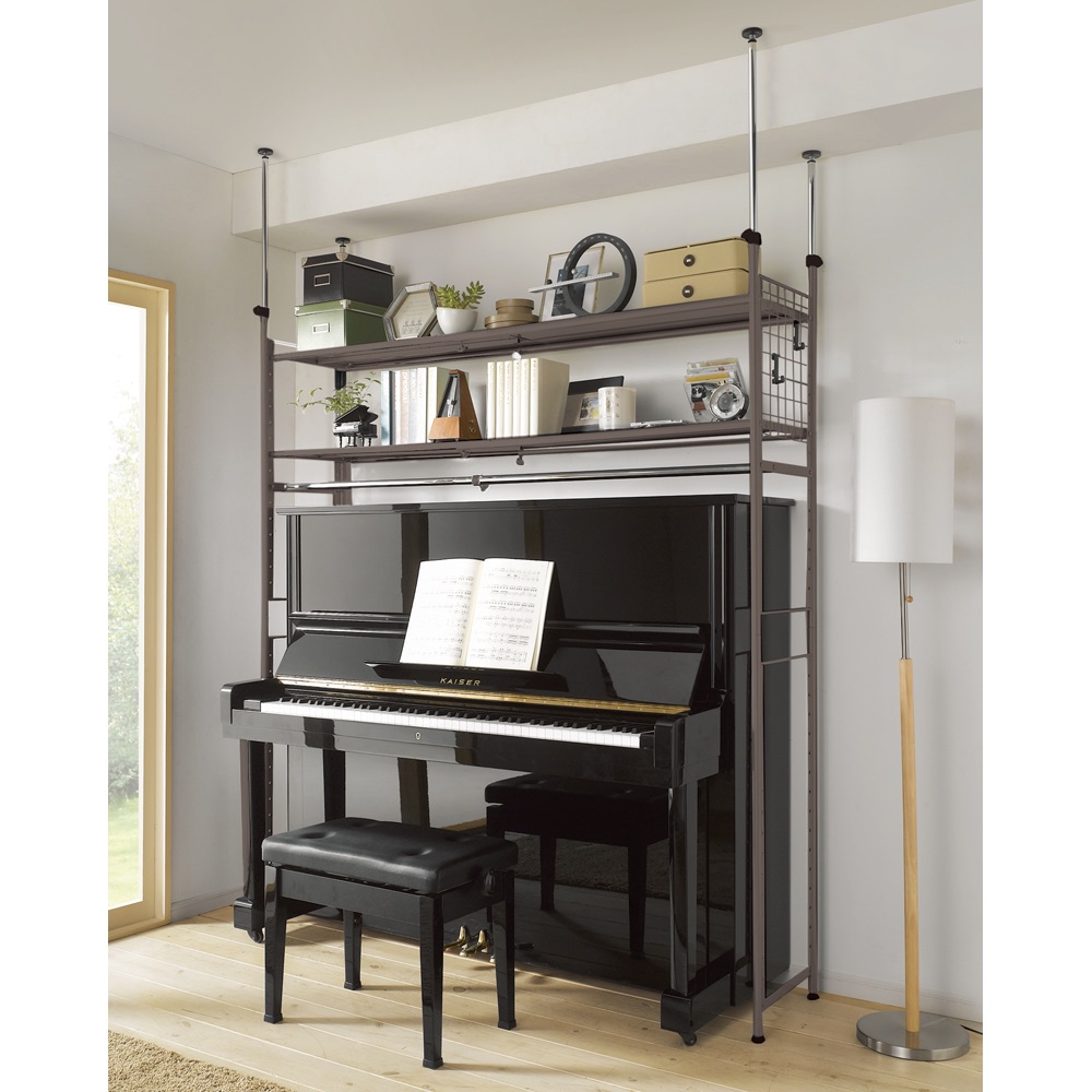 色見本(ア)ダークブラウン ピアノ上にも 重いピアノなどを動かさずに設置OK。