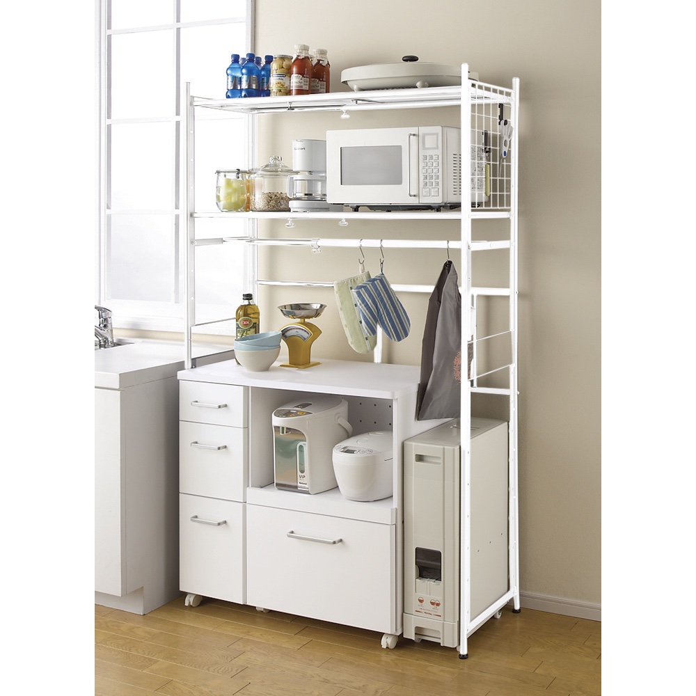 色見本(イ)ホワイト キッチン収納にも ハンガーバーは取り外しても使えます。