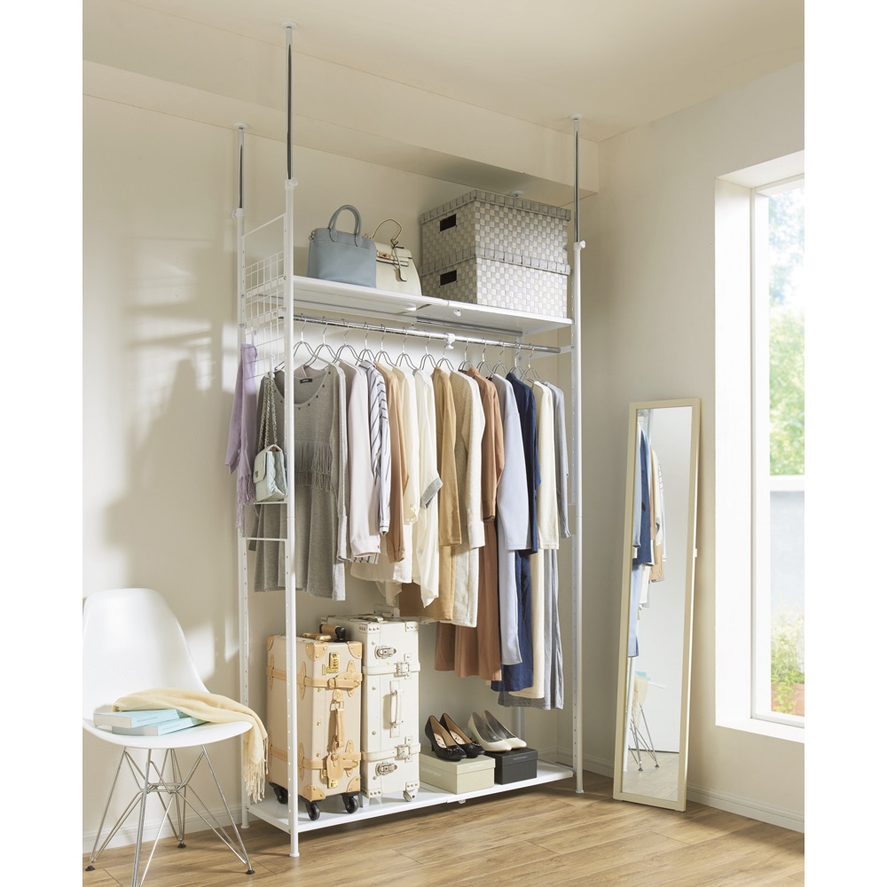 ●伸縮ラック単品でハンガーバーを使えば、お部屋に大容量のクローゼットが完成●ハンガーバーは取り外せば、ピアノやキッチン収納上を有効活用できる収納に