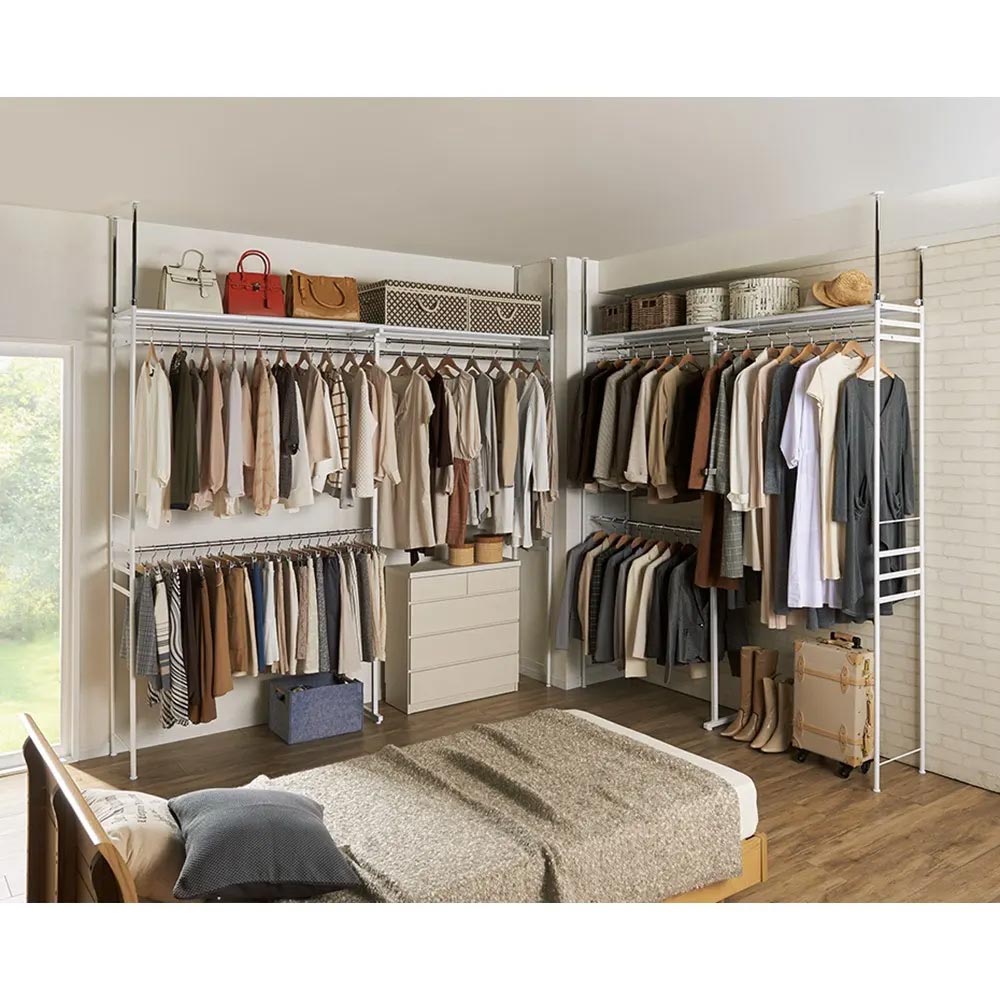 ●薄型だから2台使いで壁2面にL字型に大型収納コーナーを設置しても圧迫感のない100着以上の大量収納空間を実現可能です。