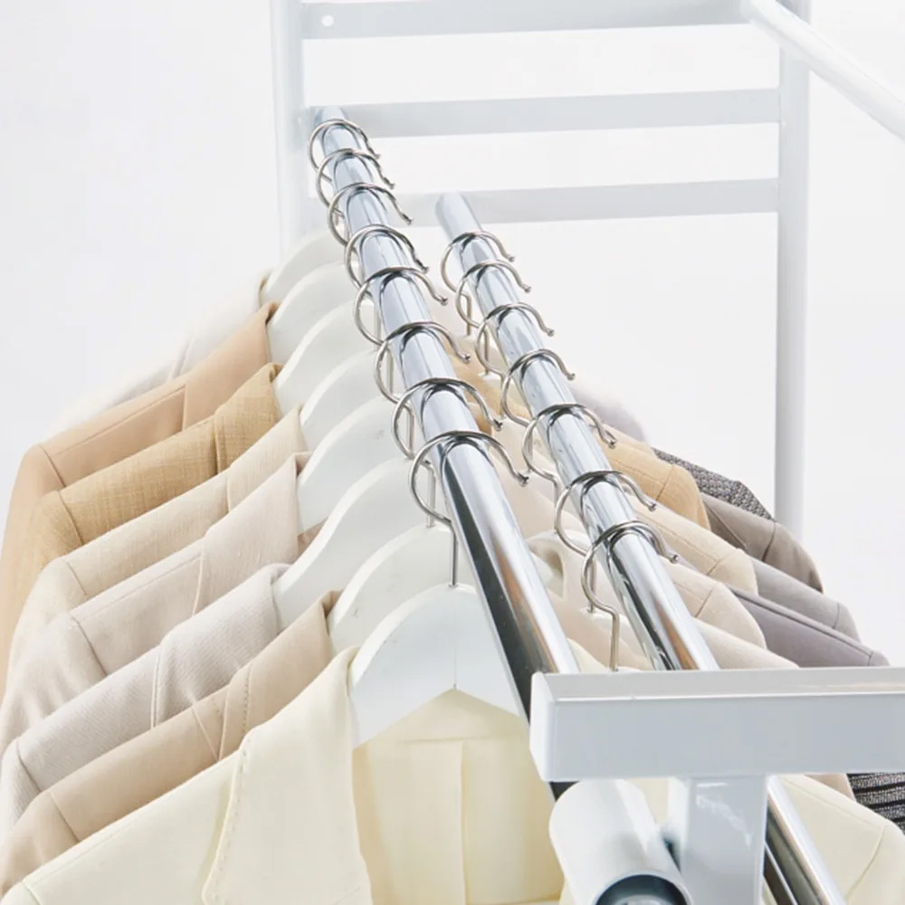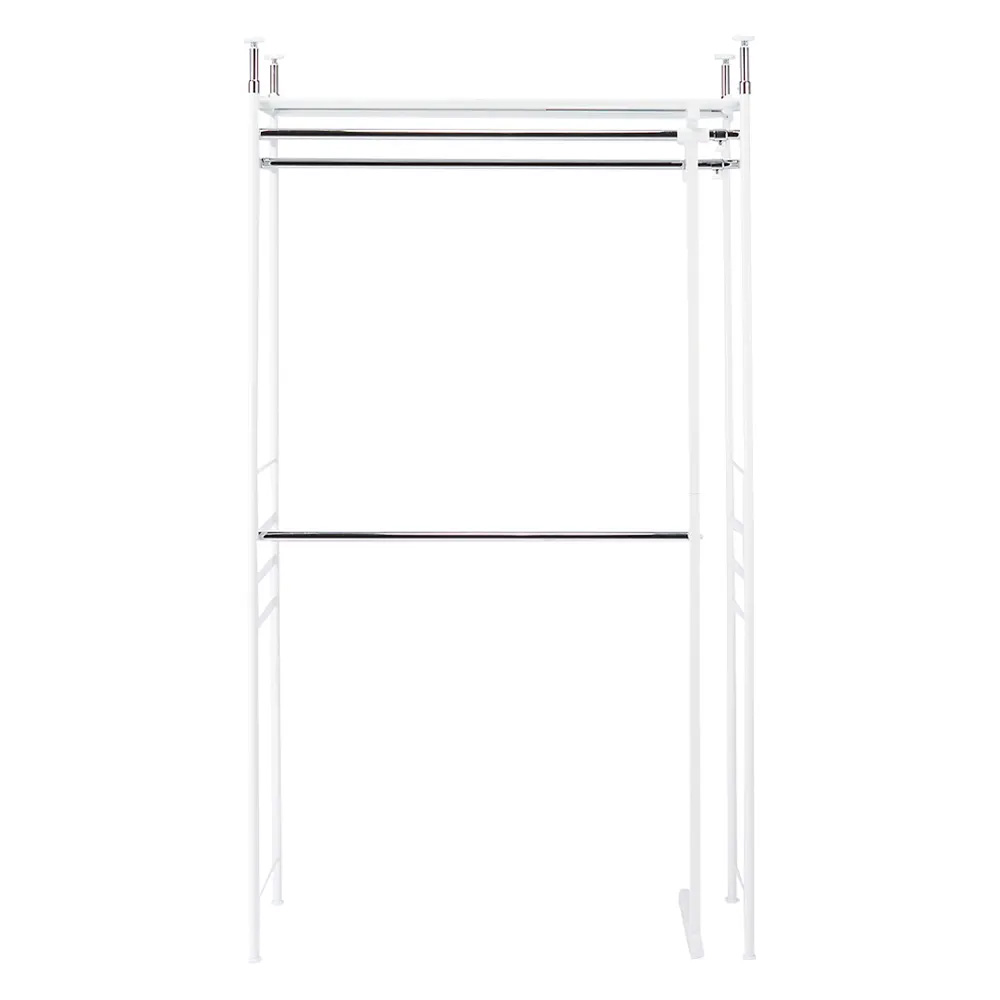 前後2列掛け 薄型大容量頑丈ダブルハンガー ロータイプ 幅120cm-200cm クローゼットハンガー カバー 衣類収納 589413