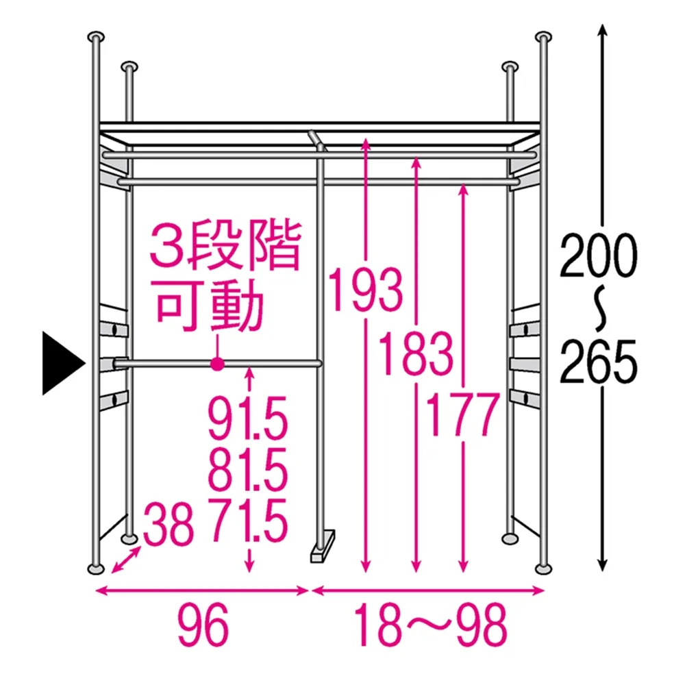 ※突っ張り式の商品は天井や床の強度を確認の上設置し、収納物を入れてから再度固定してください。また、定期的に点検してください。畳やカーペットには適していません。