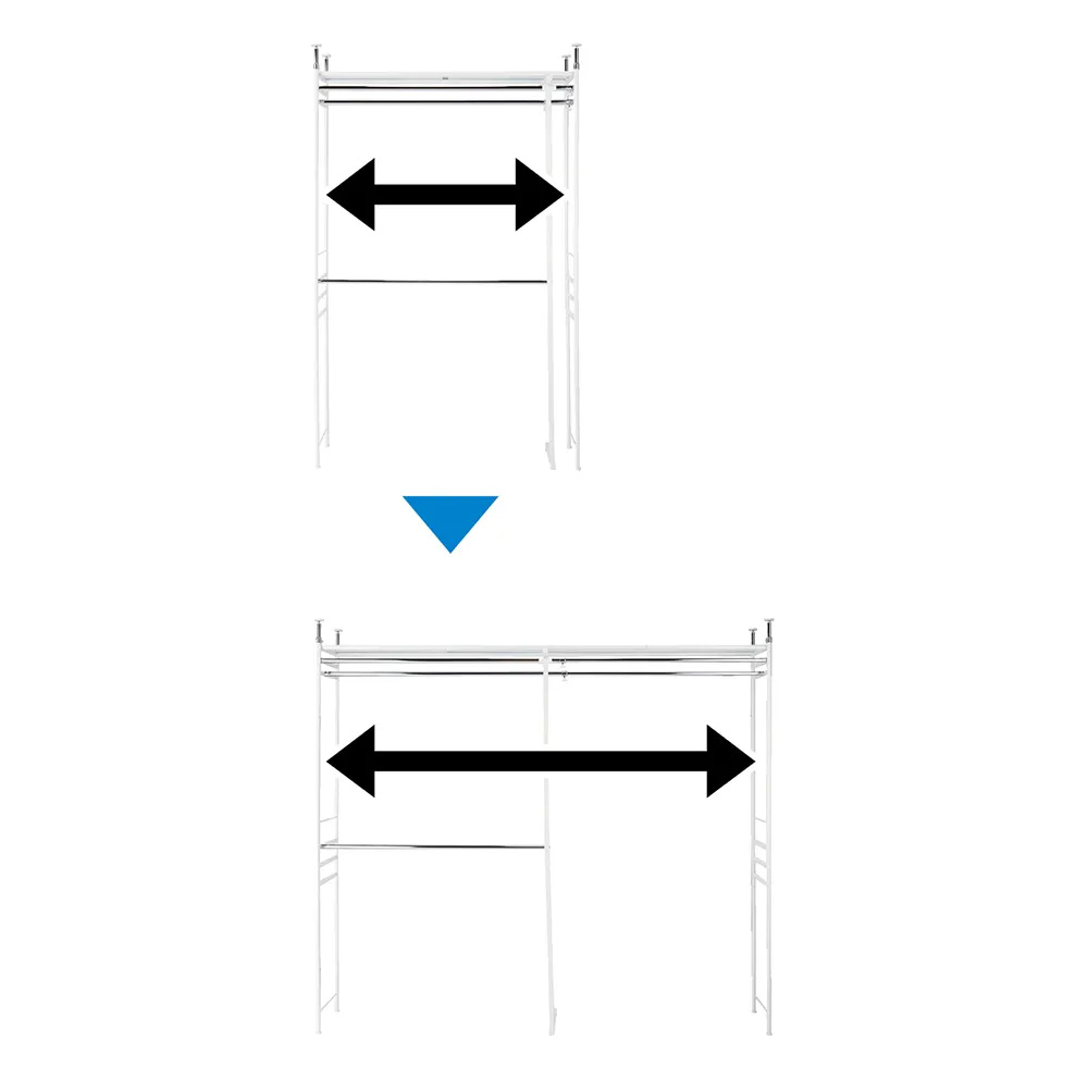 ●幅伸縮はバーの真ん中になる中間リングのツマミを回して簡単に調整できます。お部屋の幅、収納量に合わせて設定ください。