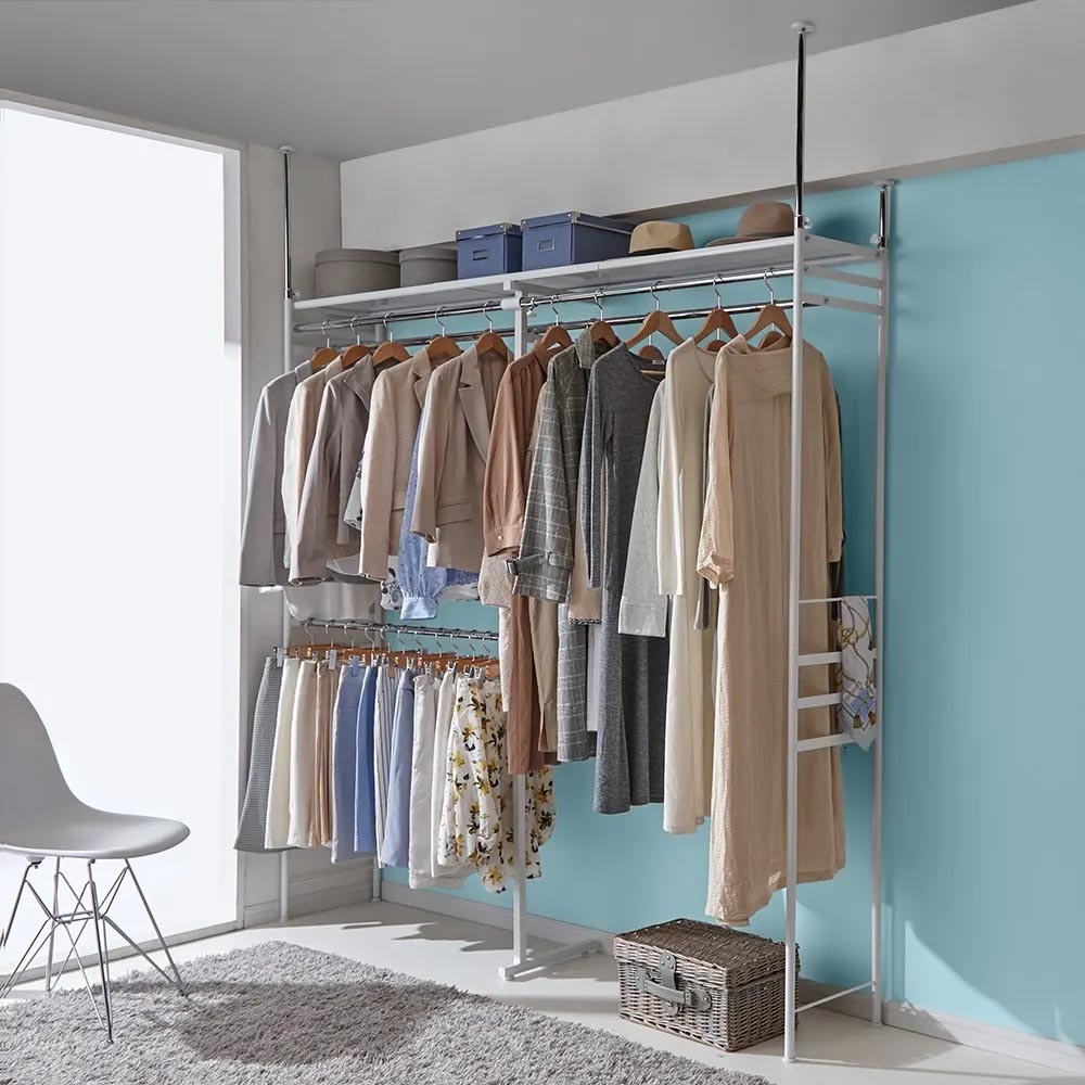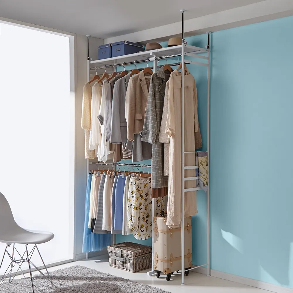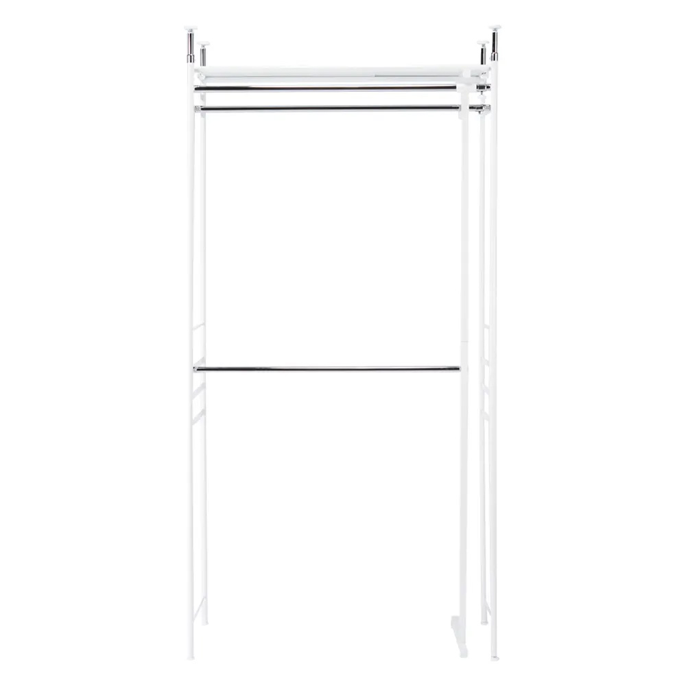 前後2列掛け 薄型大容量頑丈ダブルハンガー ハイタイプ 幅120cm-200cm クローゼットハンガー カバー 衣類収納 589415