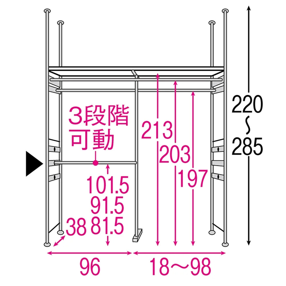 ※突っ張り式の商品は天井や床の強度を確認の上設置し、収納物を入れてから再度固定してください。また、定期的に点検してください。畳やカーペットには適していません。