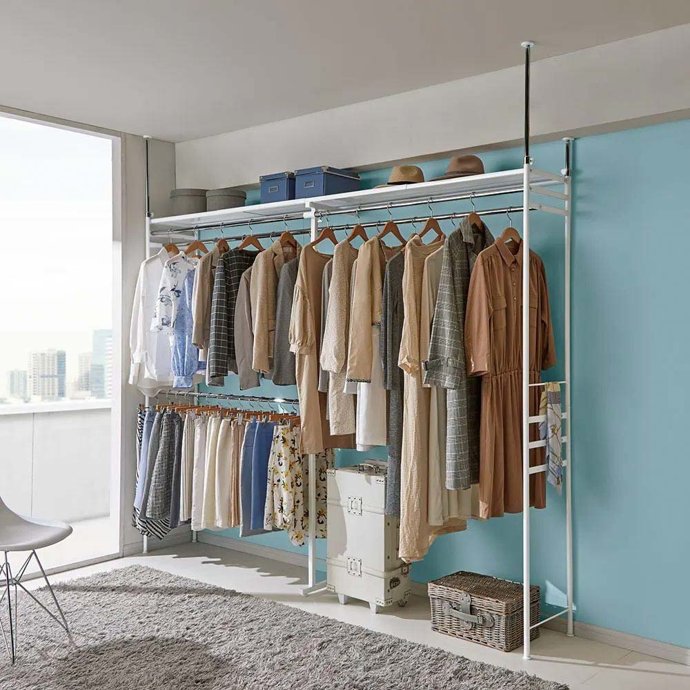 前後2列掛け 薄型大容量頑丈ダブルハンガー ハイタイプ 幅150cm-250cm クローゼットハンガー カバー 衣類収納 589416