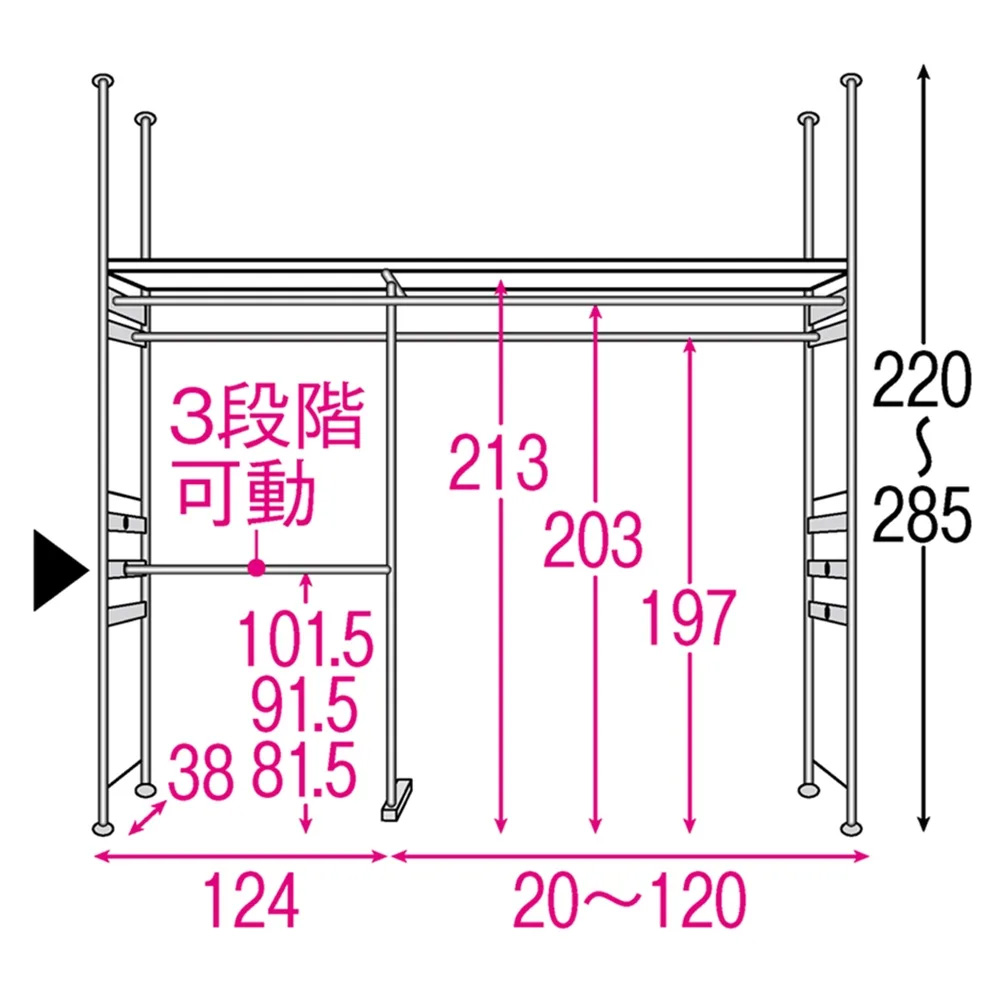 ※突っ張り式の商品は天井や床の強度を確認の上設置し、収納物を入れてから再度固定してください。また、定期的に点検してください。畳やカーペットには適していません。