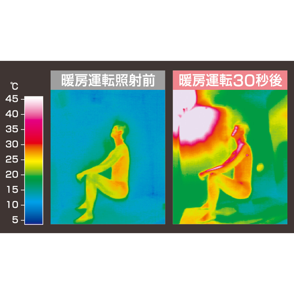 • 室温:10℃ 面積:1坪 照射時間:30秒(メーカーの環境試験室にて測定)