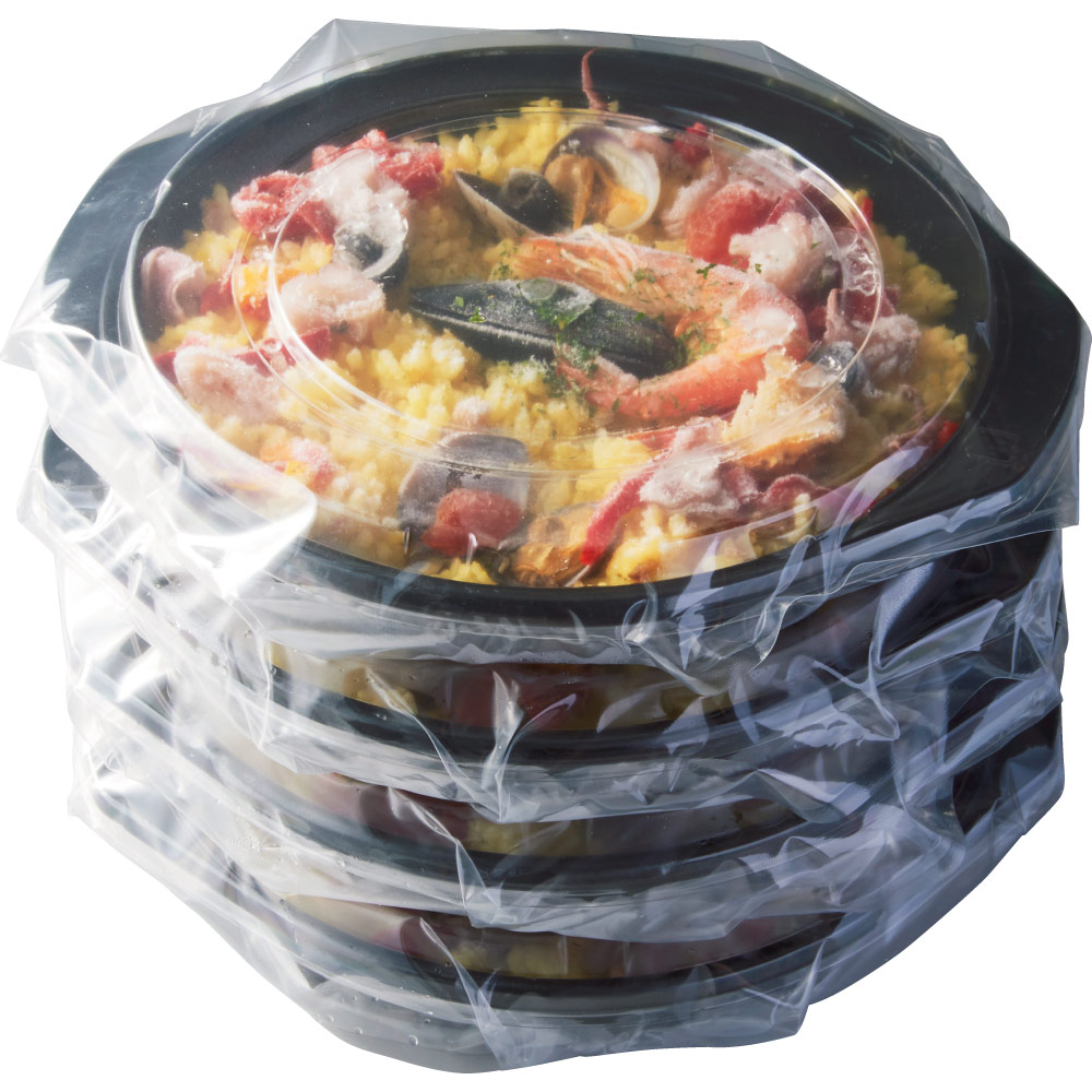 ■お召し上がり方:内袋に切り目を入れ、電子レンジで(600W:3分、500W:3分20秒)温めてお召し上がりください。くし切りのレモンを添え、絞りますとより本格的なバレンシア風としてお召し上がりいただけます。