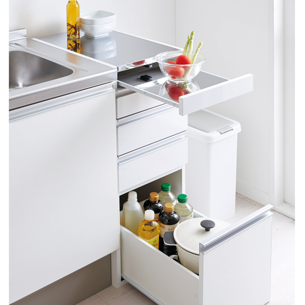 引出し内部は全て化粧仕上げ。スパイスラックや小物収納としても。