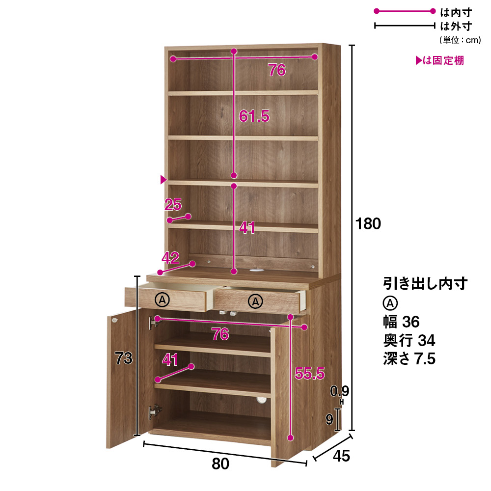 (ア)ブラウン ※赤文字は内寸(単位:cm)※写真は幅60cmタイプです。