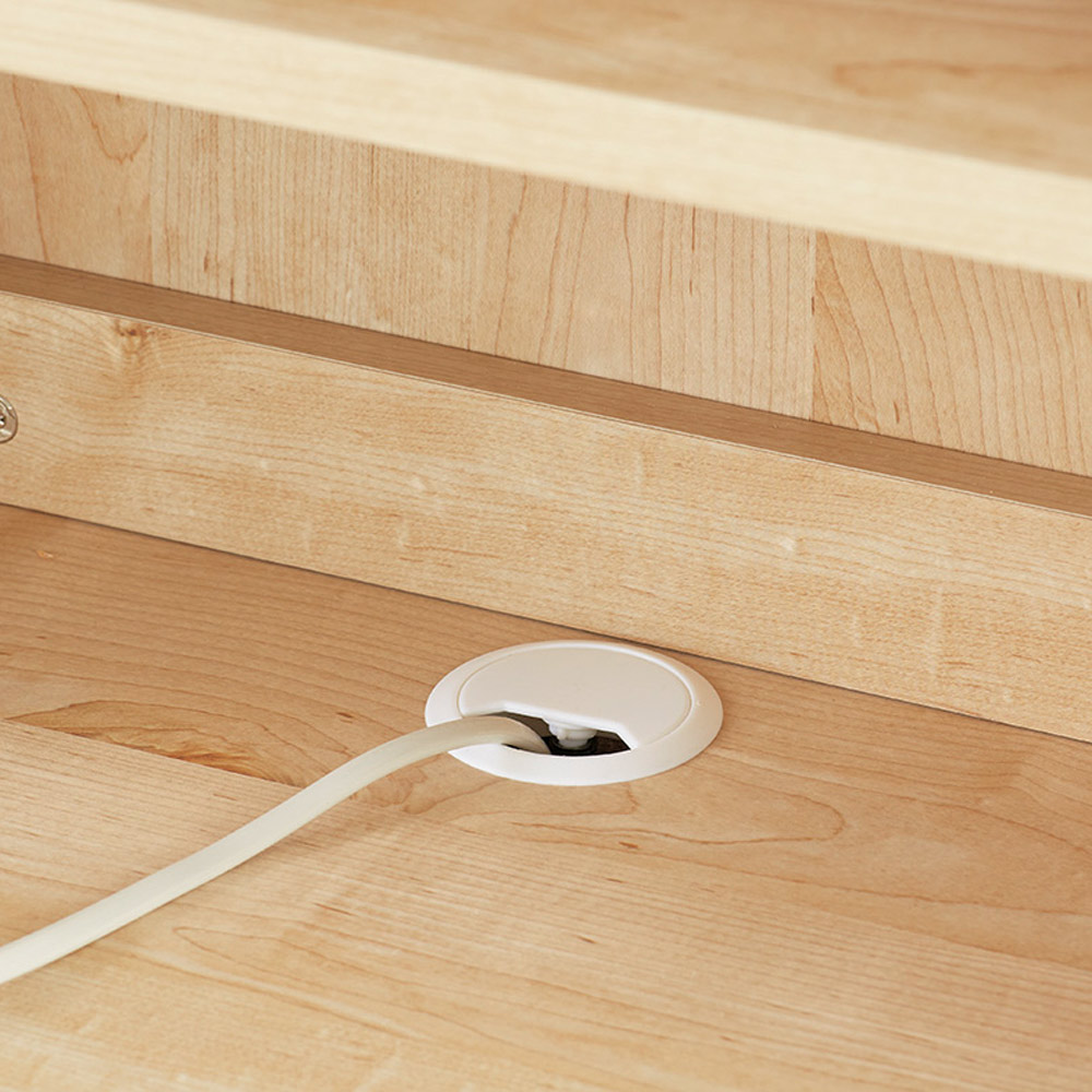 ●デスク天板には便利な配線穴付きで、パソコンデスクやFAX台キャビネットとして使いやすい設計。●扉は軽くプッシュしてスムーズに開閉できます。