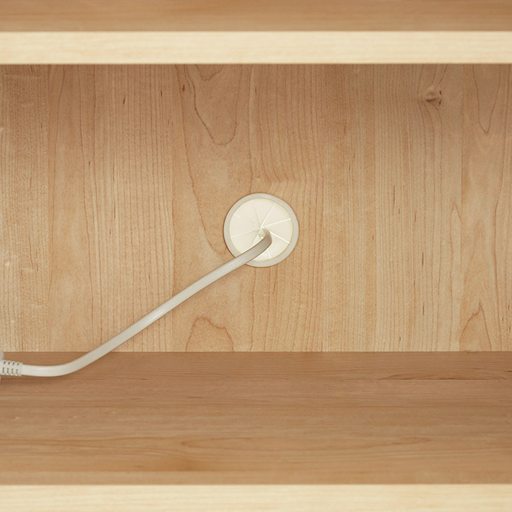 ●デスク天板には便利な配線穴付きで、パソコンデスクやFAX台キャビネットとして使いやすい設計。●扉は軽くプッシュしてスムーズに開閉できます。
