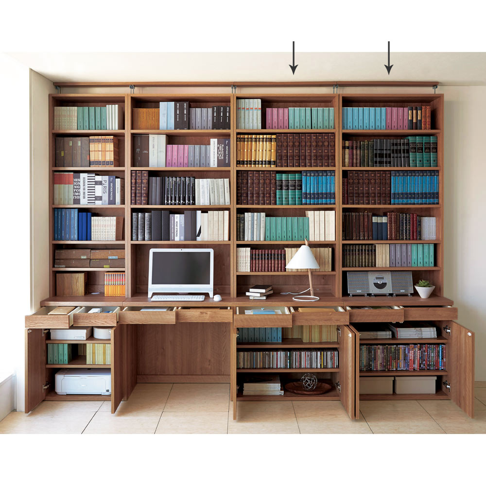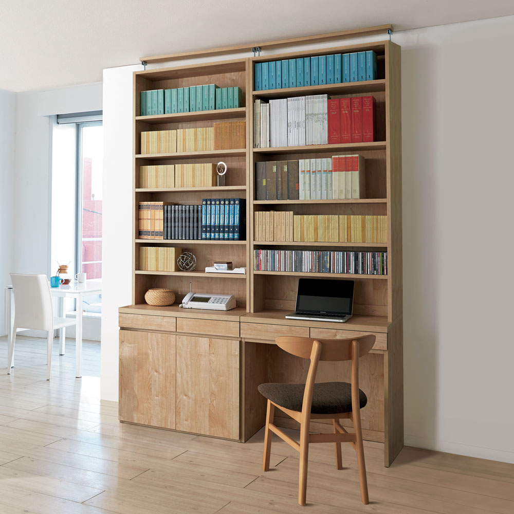 ●ずらりと本を並べ、お気に入りの本を手にとりながら読書を楽しんだり仕事に集中したりできる場所。●壁一面を本で埋め尽くして、ライブラリーのような空間を叶えるデスク本棚シリーズです。