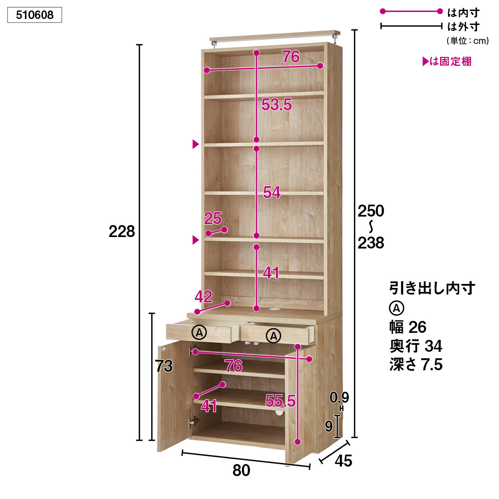 (イ)ナチュラル ※赤文字は内寸(単位:cm) ※写真は幅60cmタイプです。