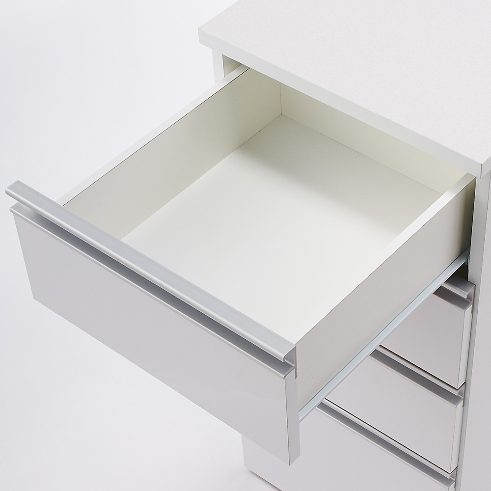 引き出しの前面は湿気や水ハネに強い光沢仕上げの素材を使用しています。