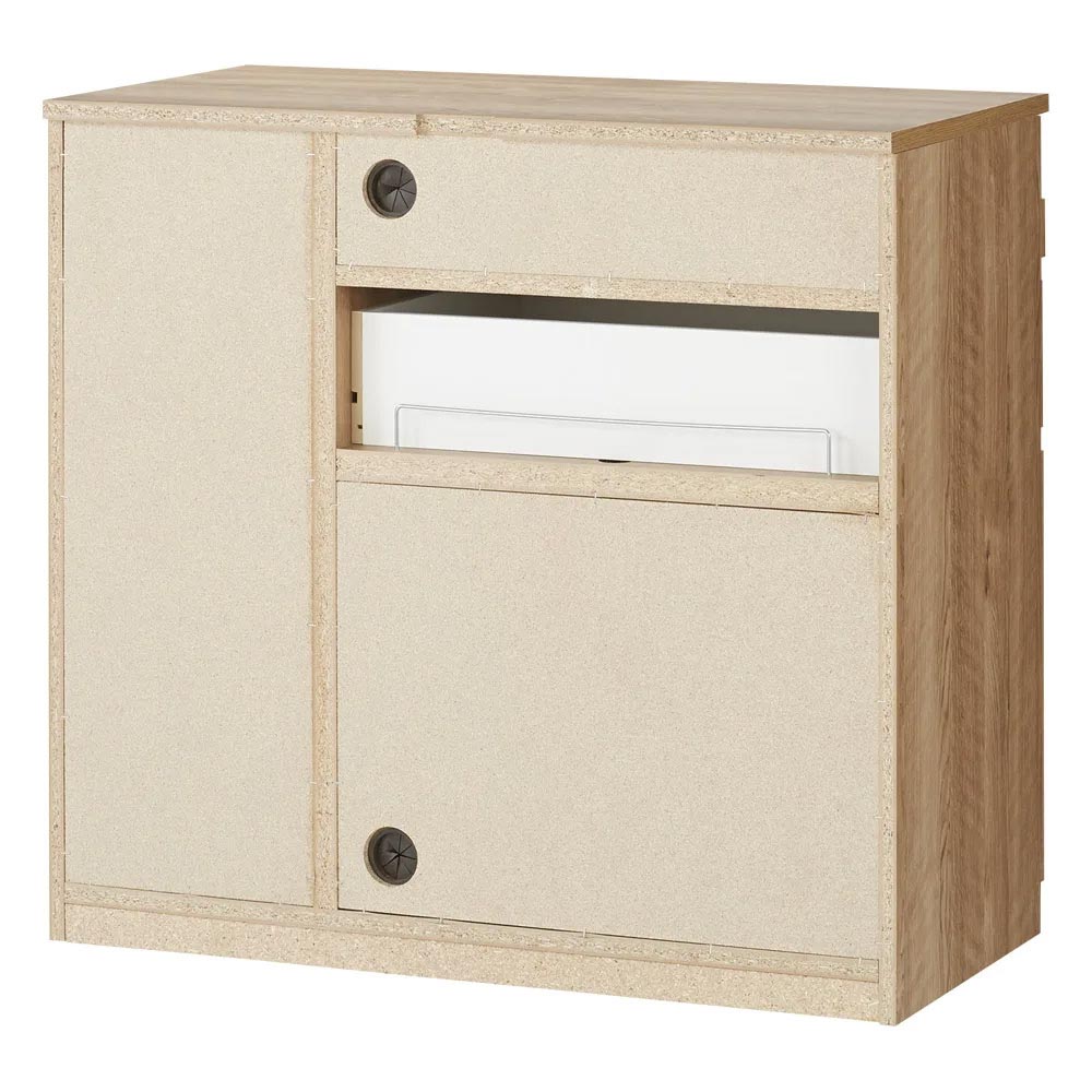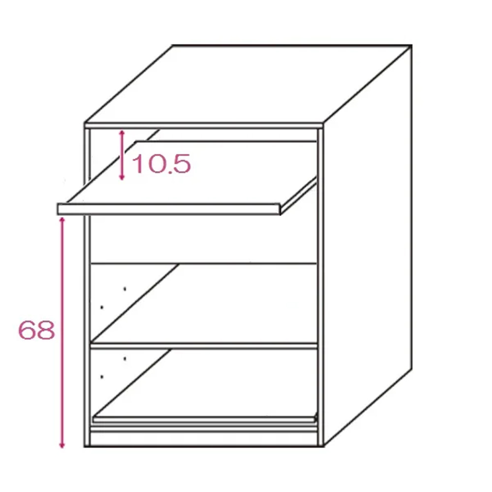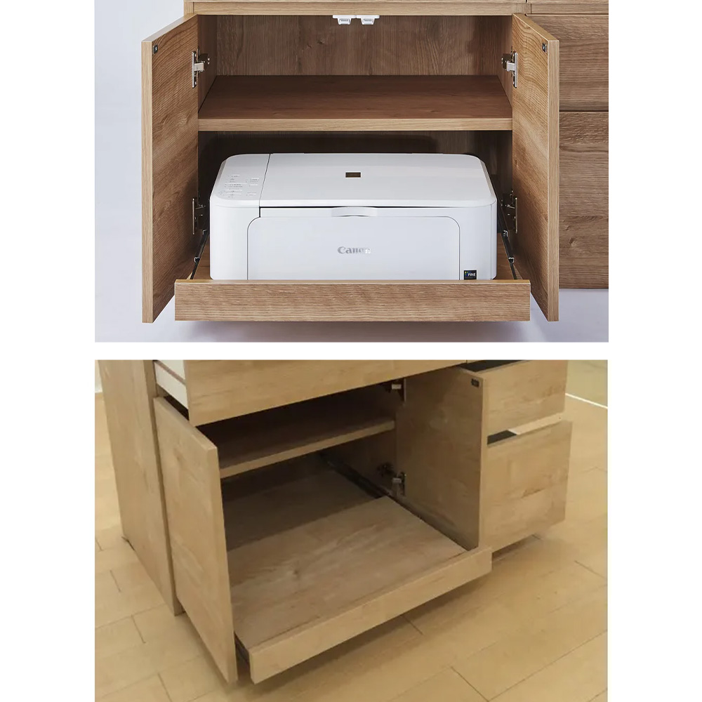 扉収納部は可動棚板が1枚付属します。最下段はスライドトレー式でプリンターを丸ごと引き出すことができます。