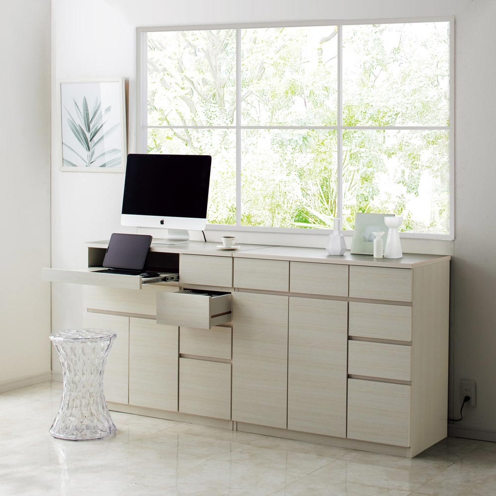 (ウ)ホワイト木目 収納とPCワークを1台に。天然木調のやすらぎスペース。仕事が終われば扉を閉めて、ナチュラルで温かみのある北欧風リビングに。 ※写真はお届けする商品です。