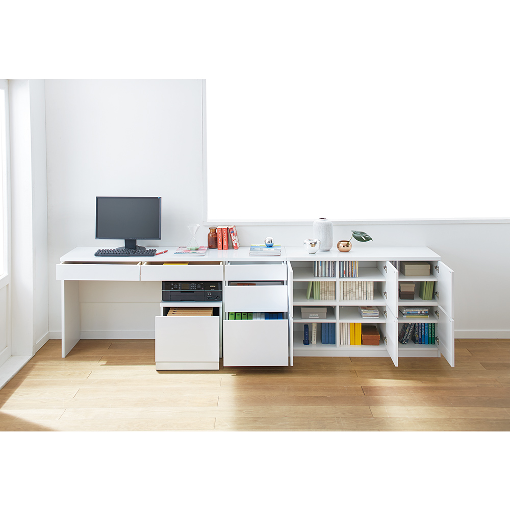 (オープン時)シリーズで並べると薄型なのに大量収納出来るワークスペースが生まれます。
