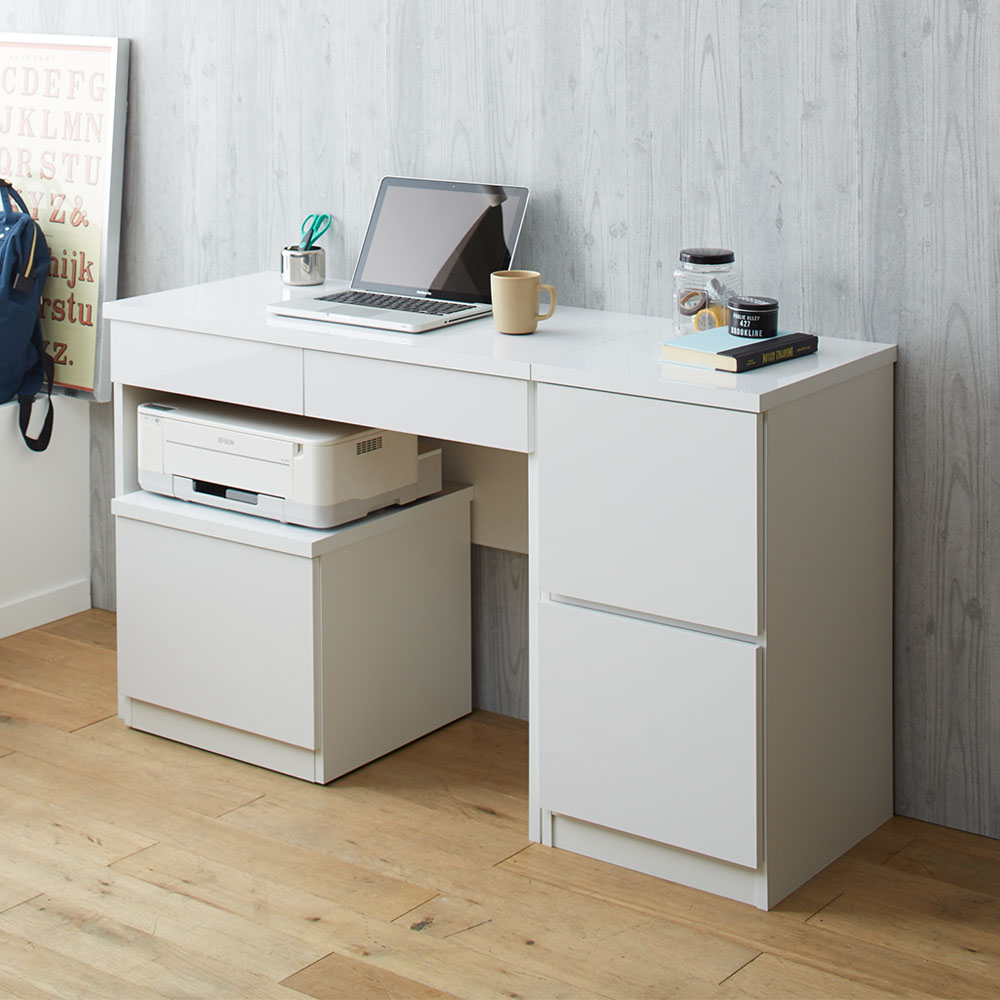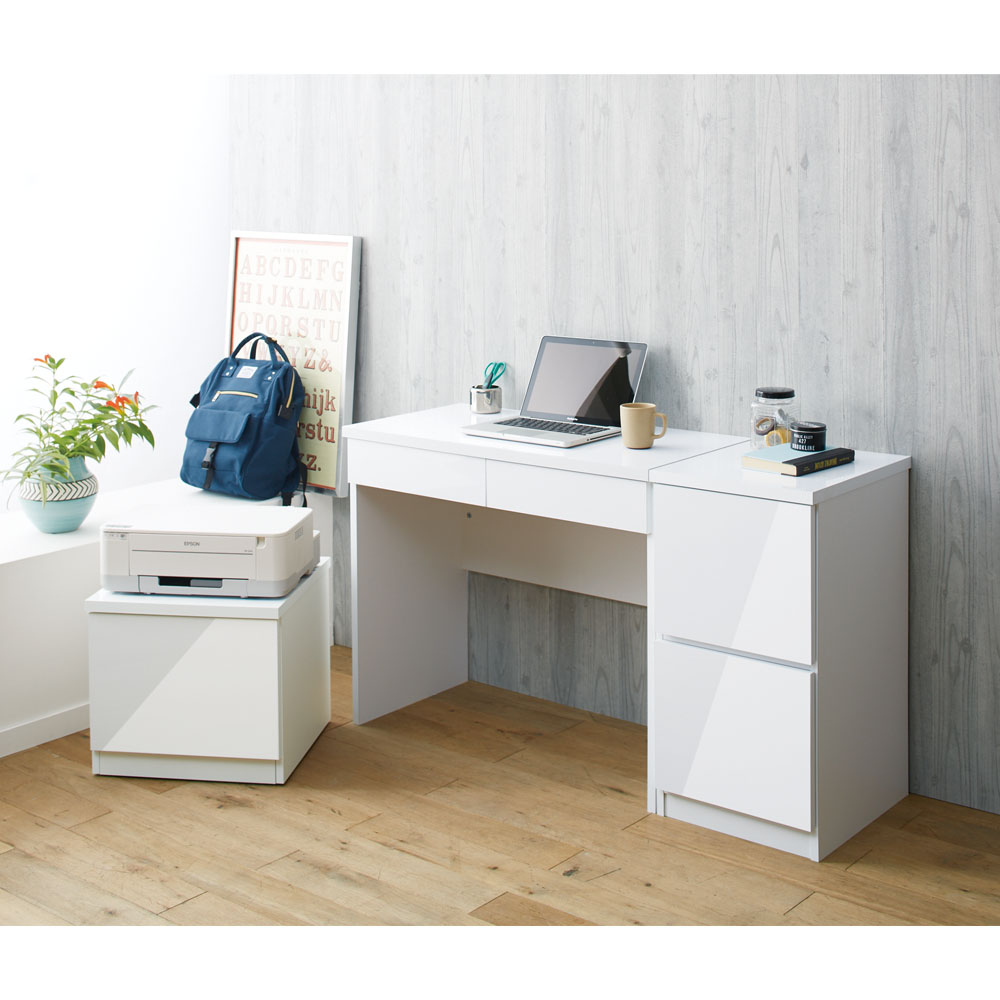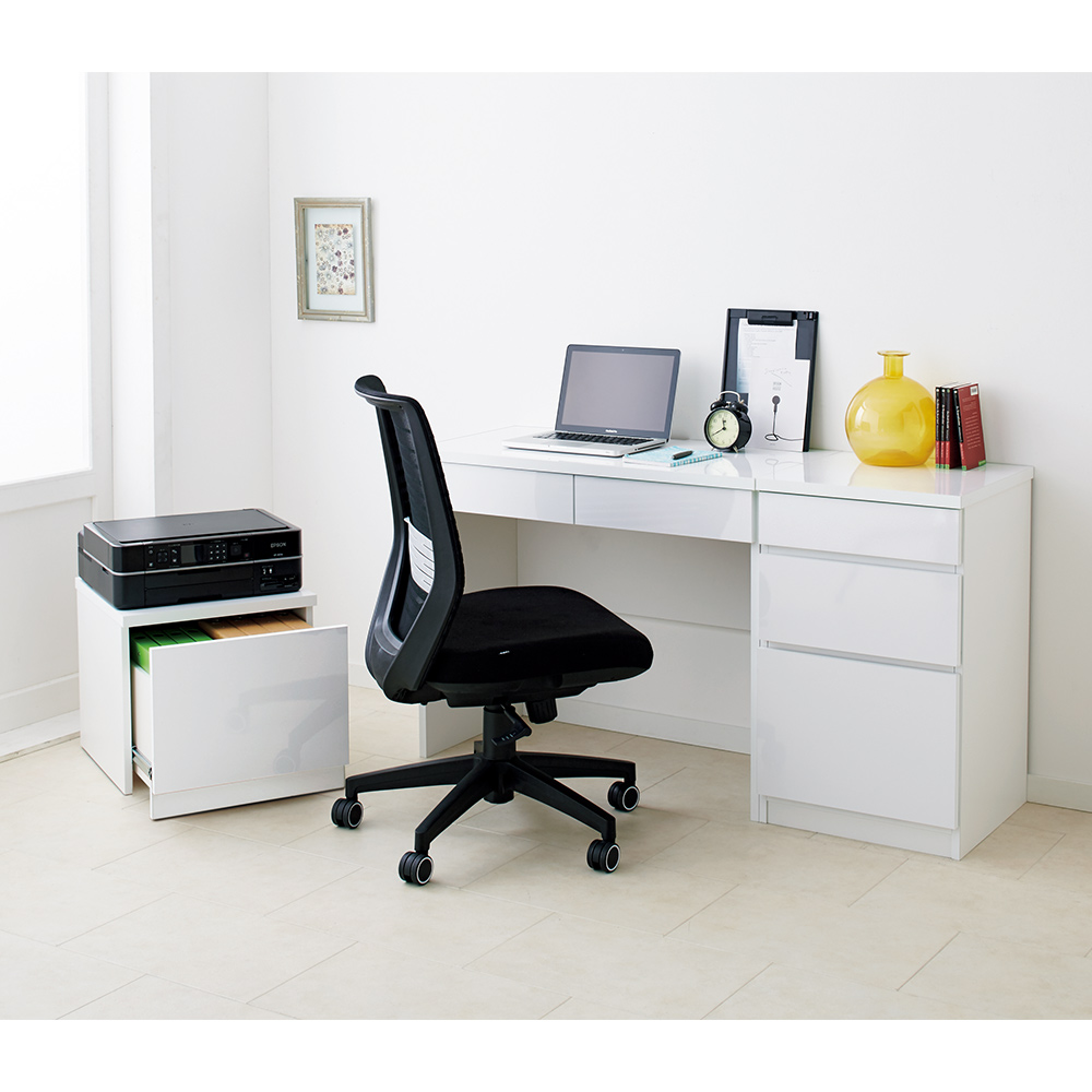 光沢リビングシリーズ デスク 幅90cm パソコン PC ワーク 袖机 机 643310