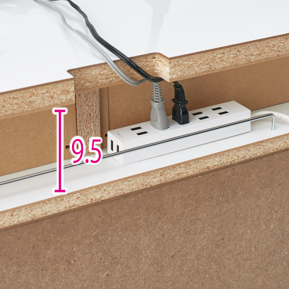背面には電源タップ収納があるので、コードがキレイにしまえます。