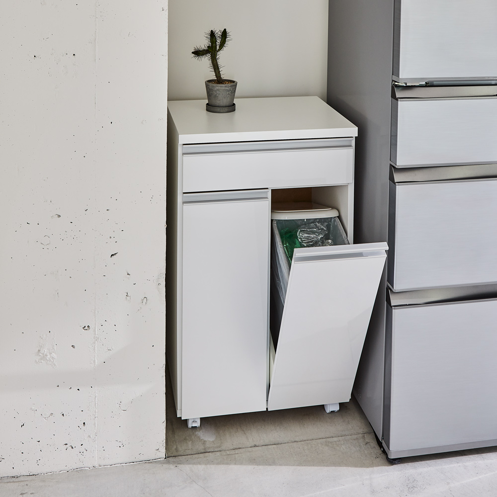 ●生活感が出てしまうゴミ箱をスマートに隠して分別でき、カウンターとしても利用できます。●背面は化粧仕上げ(一部タッカー針が見えます)。