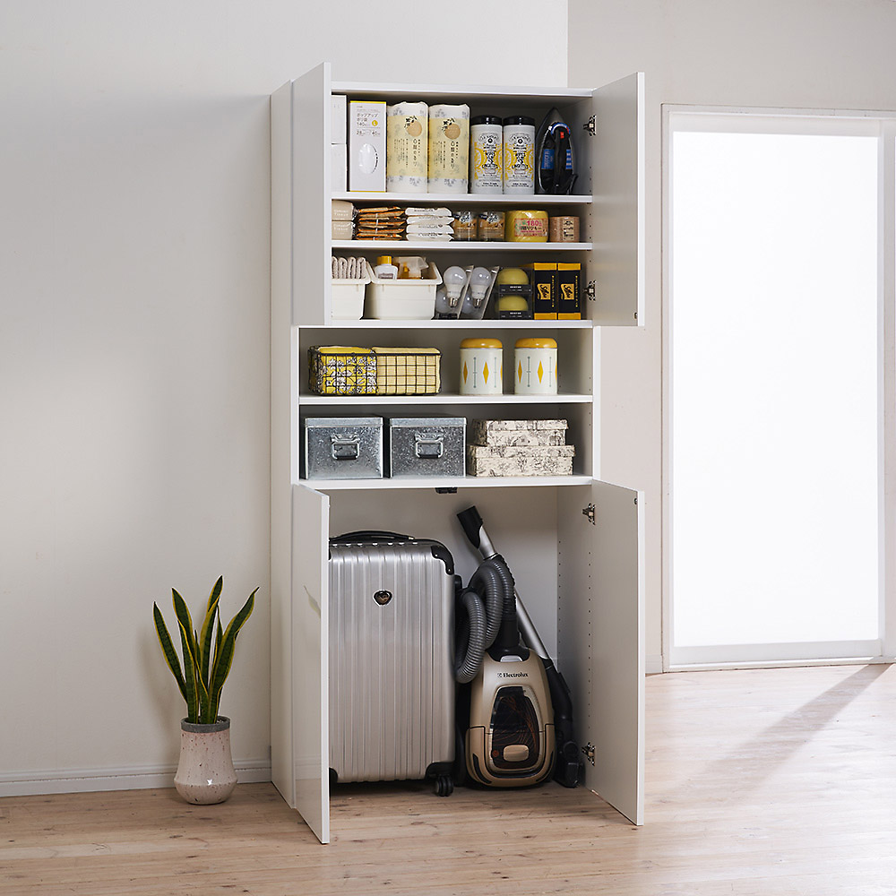 使用イメージ 幅80cm奥行35cmタイプは、幅はワイドで奥行スリム。圧迫感なくたっぷり収納できます。 ※写真は幅80cm奥行45cmタイプです。