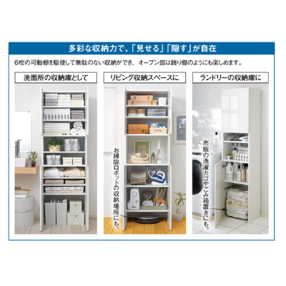 ●収納物のサイズに合わせて分類して収納できる洗面所収納です。●幅30cm、45cm、60cm、80cm、奥行は35cmと45cmからお選びいただけます。