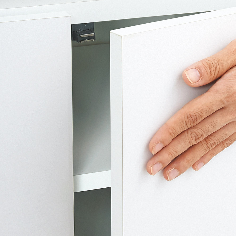 ●扉を閉めるとすっきり美しい光沢仕上げ。清潔感があるので、お部屋が明るくなります。